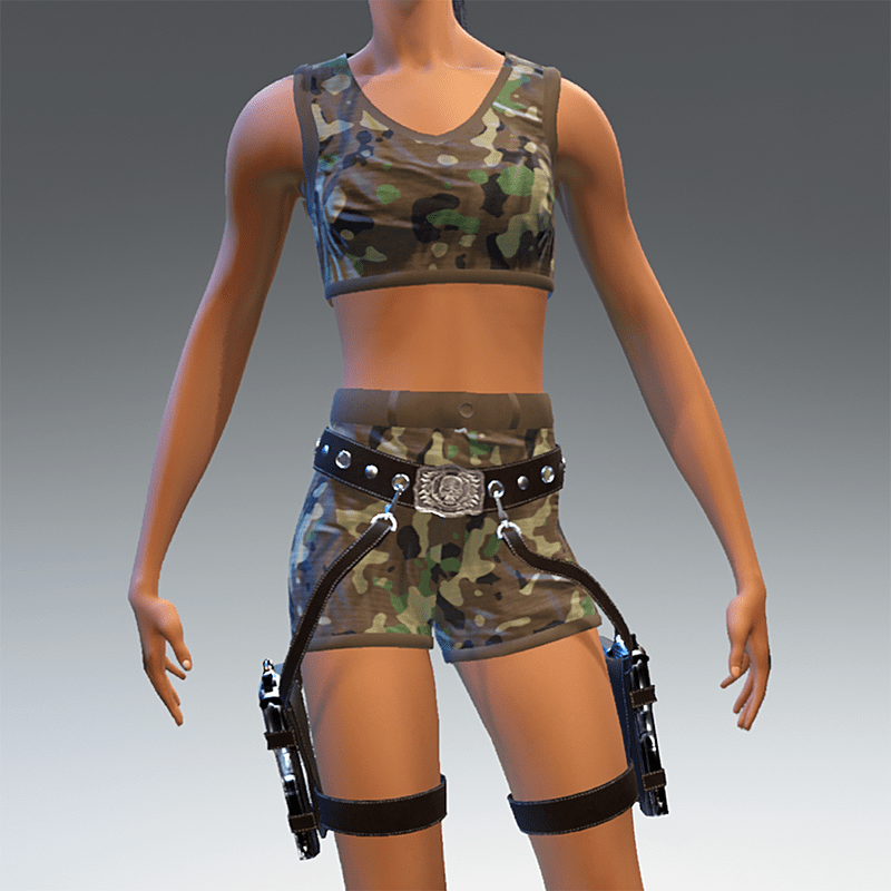 Camouflage shorts and top for women. In my store is available the items "Thigh holster and guns Brown and Black for women". shown in the last picture. I appreciate you rate this product.