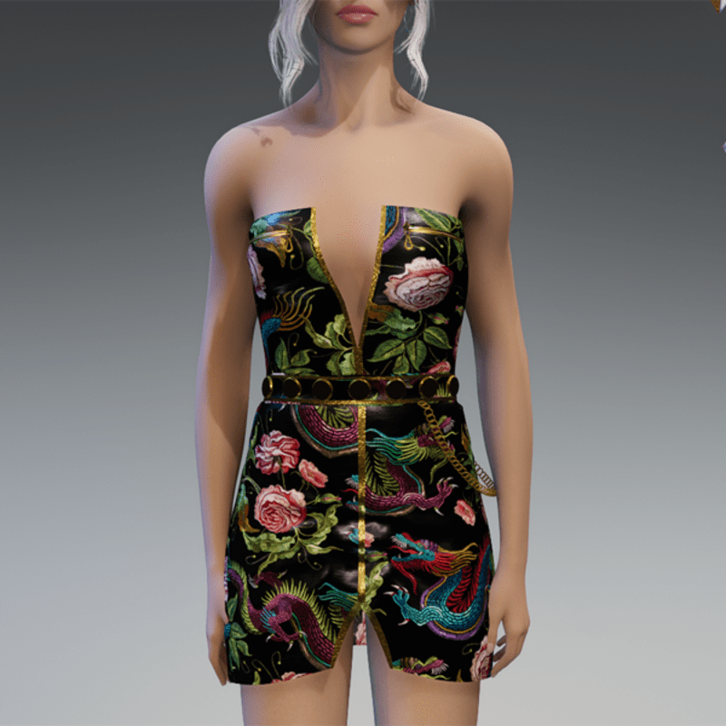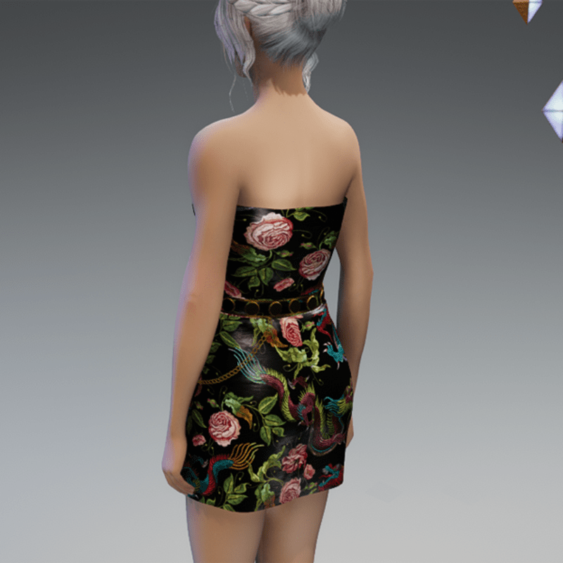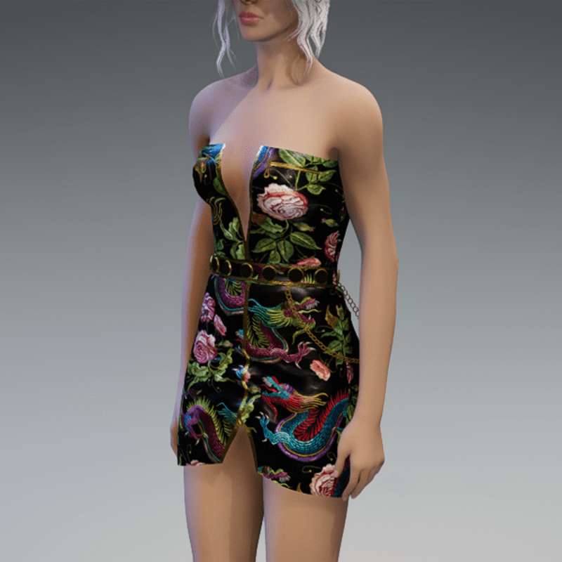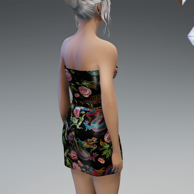 this elegant cocktail dress comes with some gold applications and a leather fabric with some dragons and flowers on it. Enjoy! <3 what I used in the first picture: hair by kellinha https://store.sansar.com/listings/cea66e90-39e6-4185-9e00-040f4ef44a4a/lukela-light-blonde-base-side-style avatar by Jenna https://store.sansar.com/listings/2015b1af-a2d1-418f-aee6-ff5e83a93e10/bray---pale-female-avatar-20