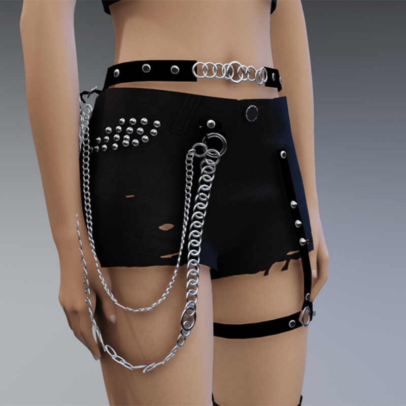 These shorts pants comes with lots of chains and rivets applications. It can be a bit tricky to adjust it on avatars which are a bit too different from the default avatar, but it tested it on several sizes and it worked. Enjoy! <3