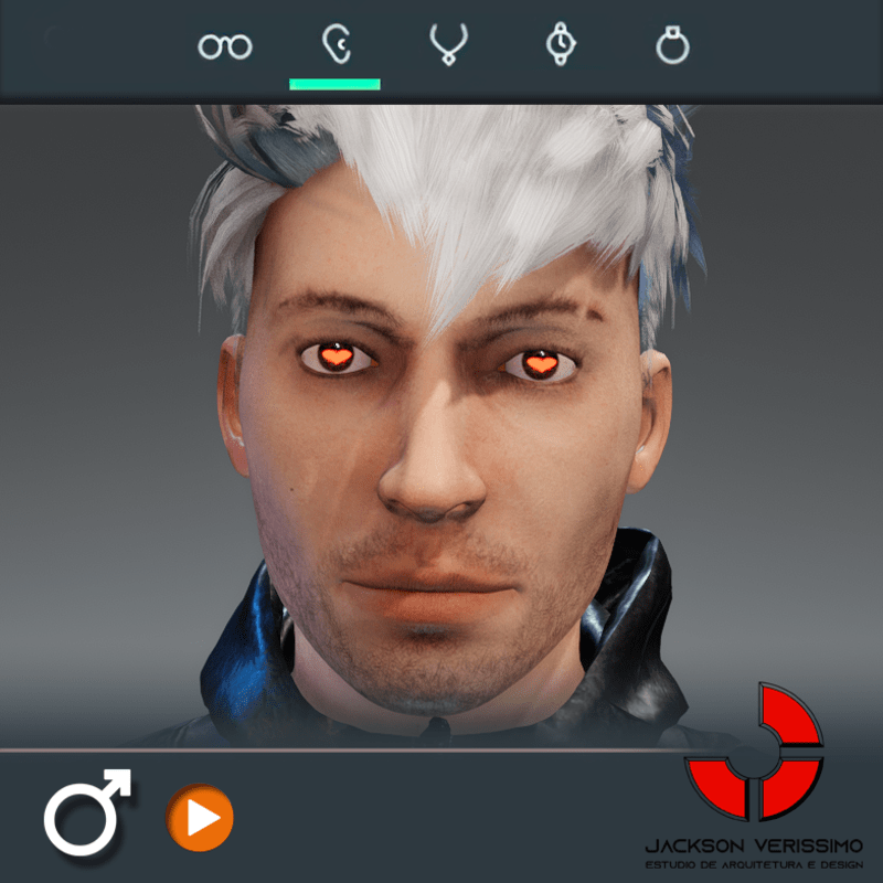 From Men avatars Colored Contact Lens for Valetine day. Emissive contact lens designed for Sansar Metaverse. With Flipbook Animation ! :) You can use with transparent glasses. See the animation: https://gyazo.com/a9f2ab8d93718374221b38ef7af04821 Fit all 2.0 male avatars. Match with almost male humanoids avatars in Sansar, just a adjustment for match. Ps. This acessory is located in Ear acessory for make possible the use of glasses.