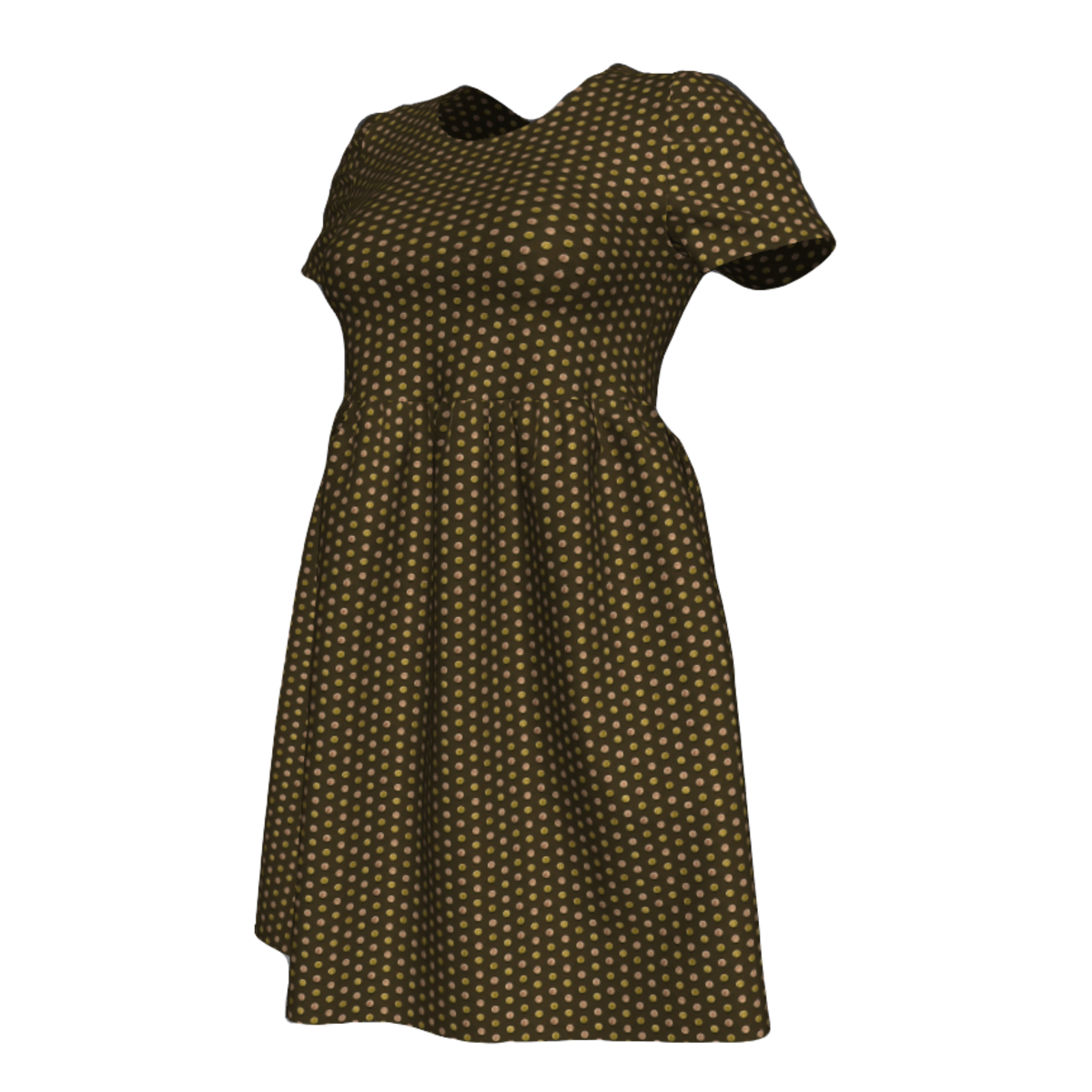 Brown Polka-dot Babydoll Dress