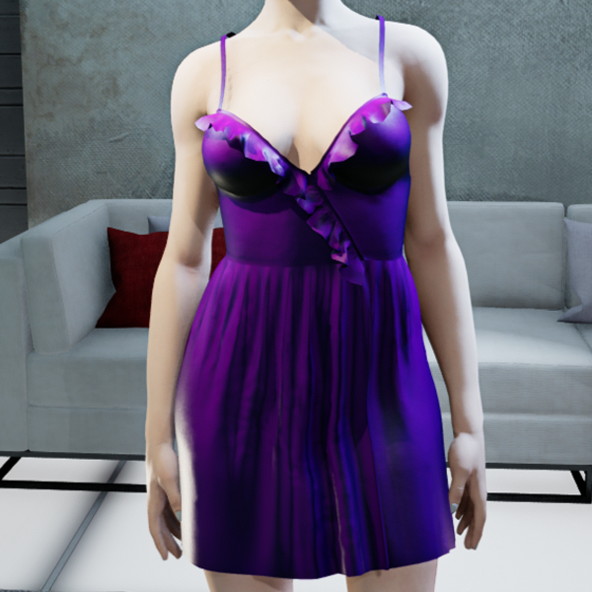 Silk dress with ruffles and spaghetti straps. This design is created with marvelous designer and the texture is manually adjusted to give it more depth. If you need a specific color, please do not hesitate and contact me! If you like this design, do not forget to rate it!