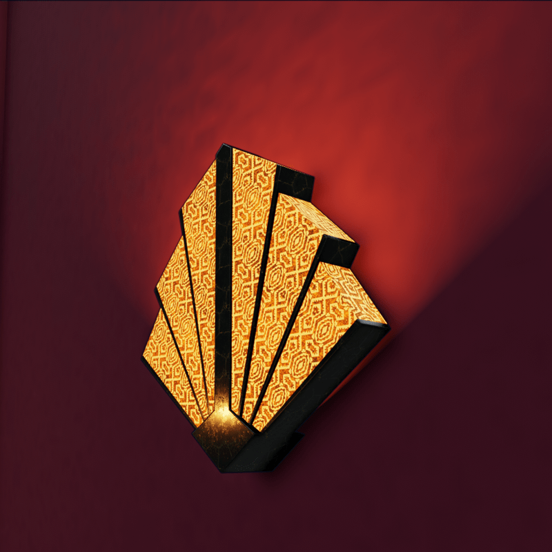Art Deco Sconce. To get the light fan spread effect, add a light in edit mode. Select 'spot' and configure as you see in the photo. The light settings are here: https://gyazo.com/007e2aa3f054b15a1e04688bae448026 Any questions, please contact RAG@ragmedia.com
