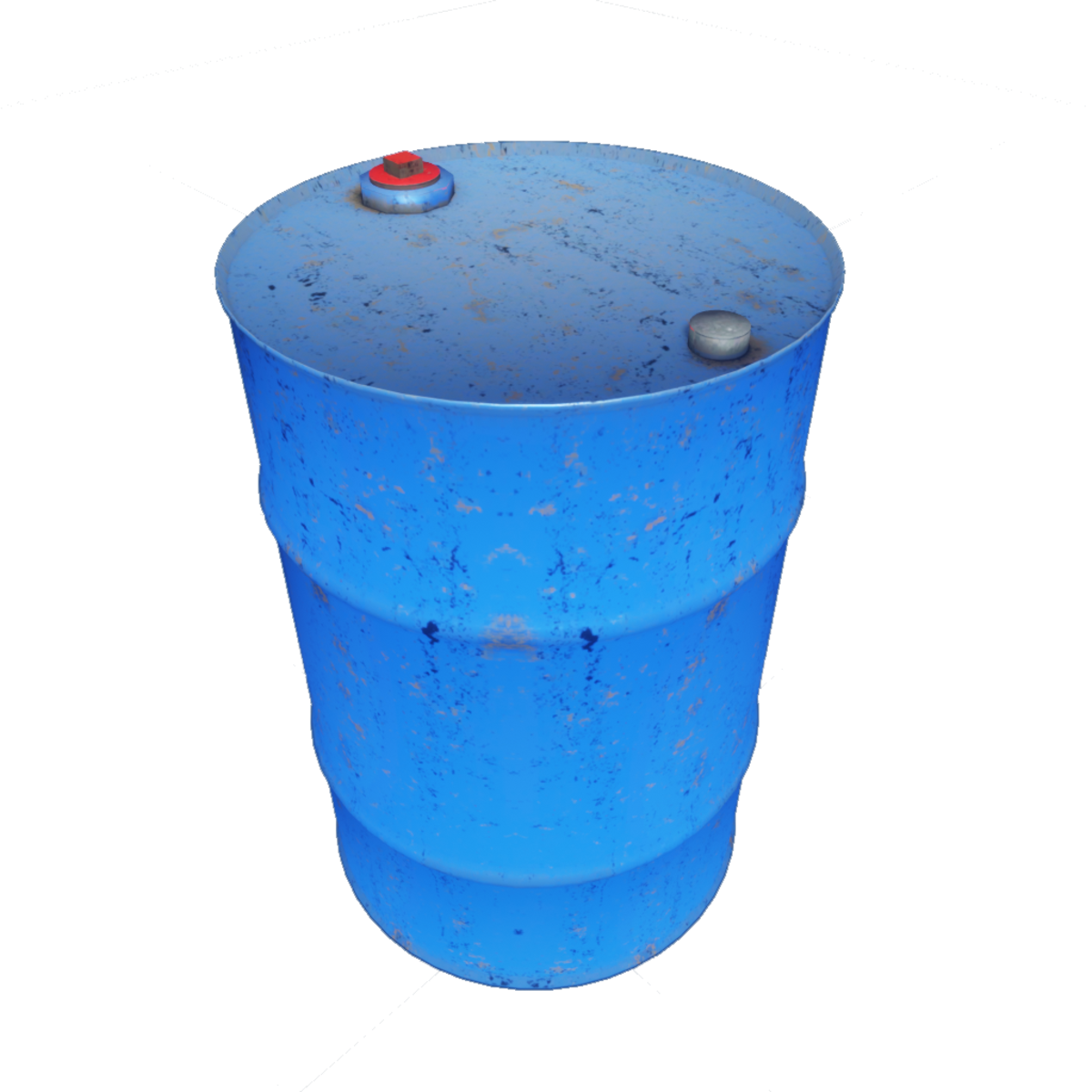 Light blue barrel with a dirty look and some paint damage. Size around 59 x 89 cm