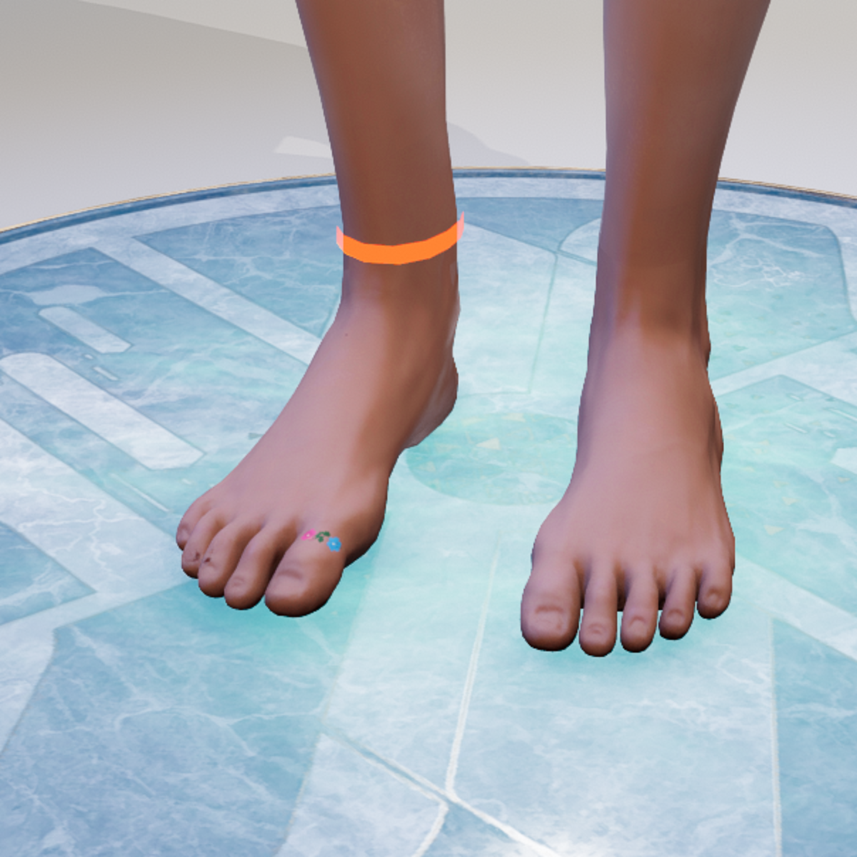 This Anklet is animated emissive, scrolling up, changing the colour of the Anklet. It is both movable and adjustable to fit most avatars.It can also be placed on either ankle.