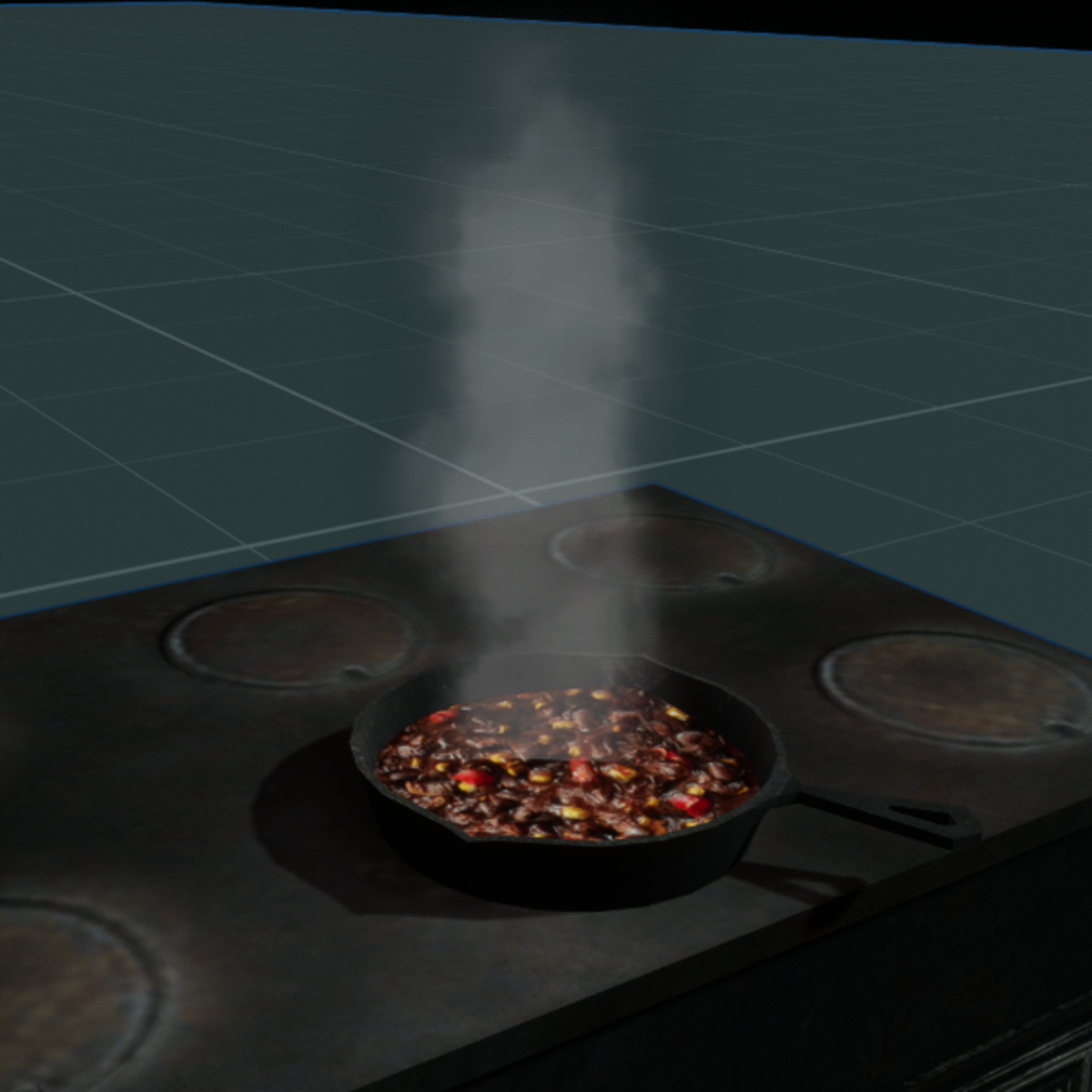Red hot blazing chili beans with animated steam and built-in light! Use Scene browser to scale and move if needed.