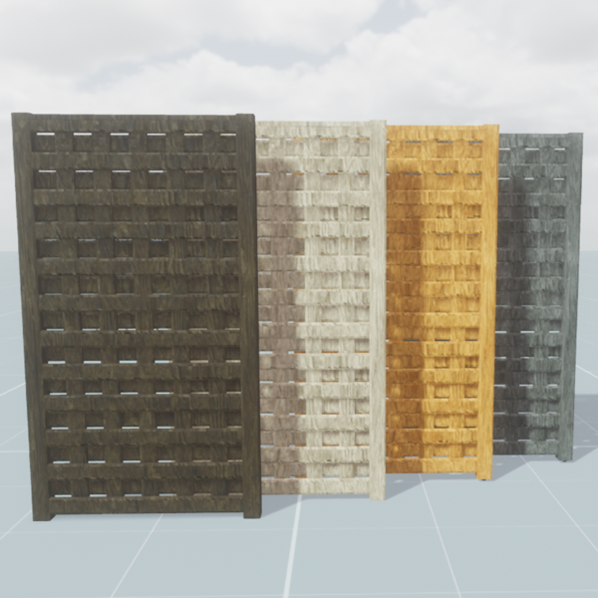 A set of 4 wooden walls with textures. See live example: https://atlas.sansar.com/experiences/sammiekiddo/foodcourt