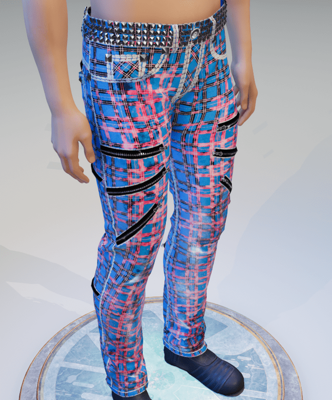 Don't like it so pristine.. Get dirty with this Punk Rock Chaos Blue Plaid Acid-Dirt-Bleached Jeans. Enjoy and have fun!