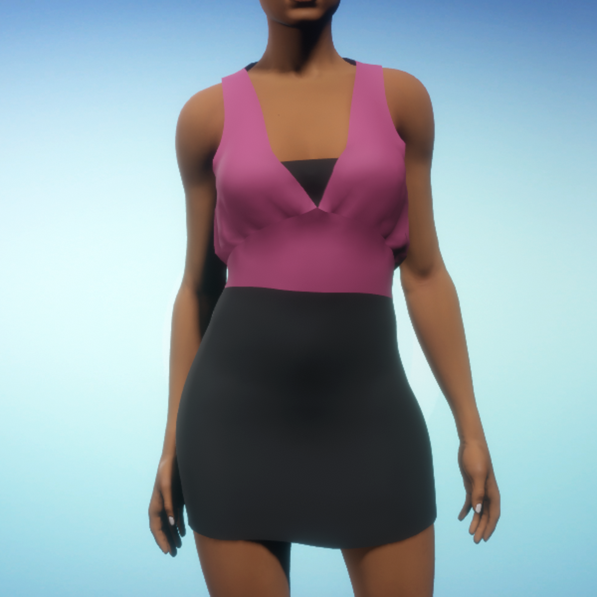 Bloused Mini Dress - Fushia and Black