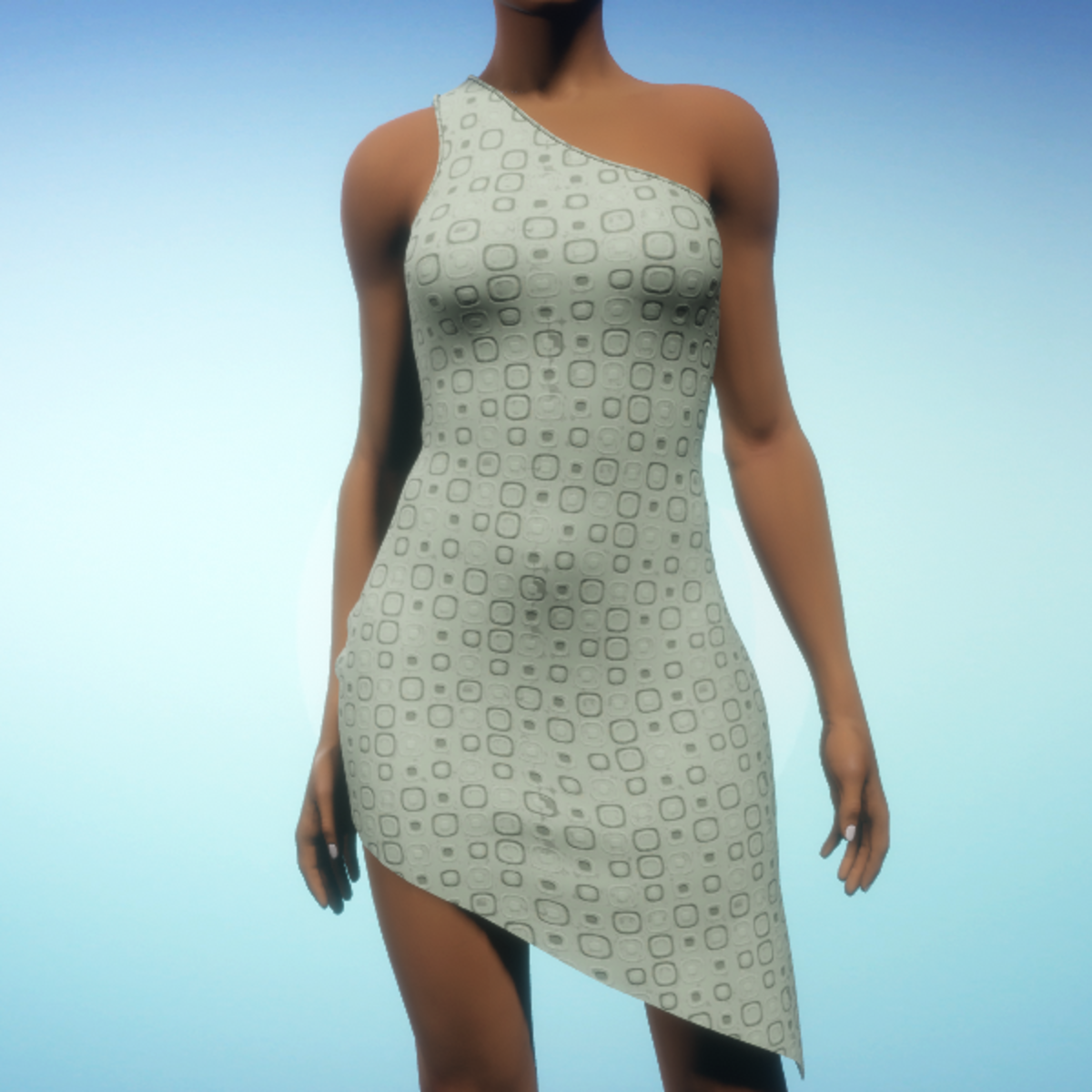 A one-shouldered, form-fitting asymmetric dress that is cut higher on one leg. By Sweet Distractions