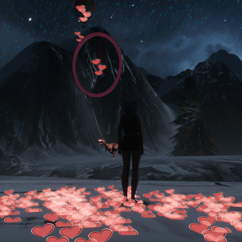 View in ACTION here: https://gyazo.com/7e15c8959ea1b763ec5729f70757dff8 or https://gyazo.com/b2be3e71b9c194b88e653f8639cf6551 or https://gyazo.com/4d95a488b4501759d548b513a3b33756 Heart Particles Valentine that glowes in the Dark. Great as decoration in your experience. Just see this item in my experience: