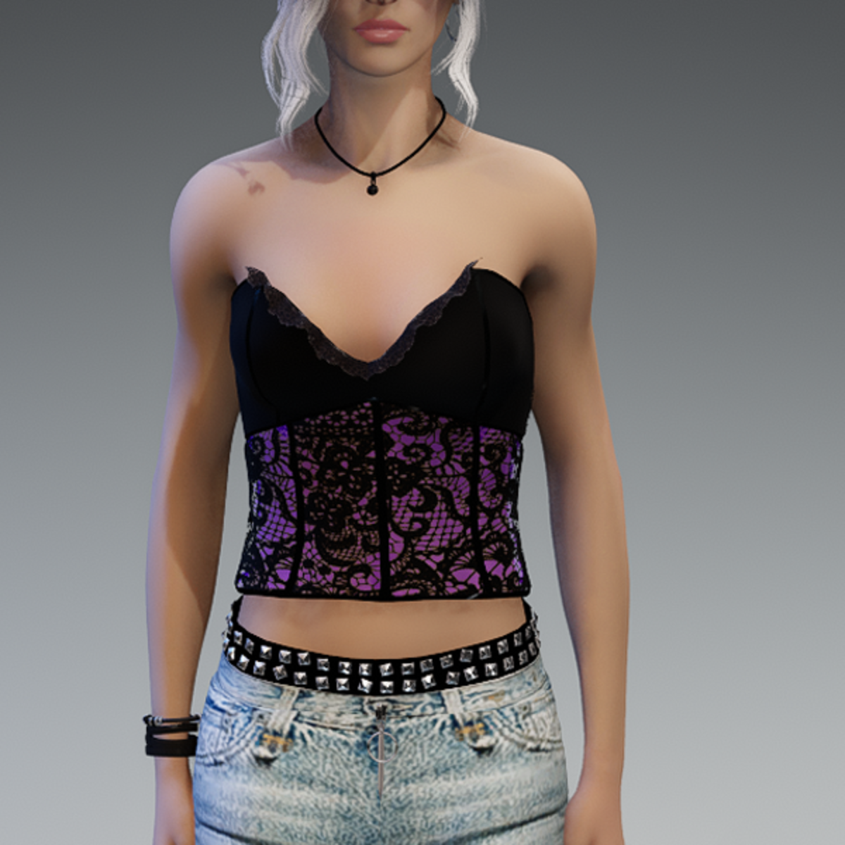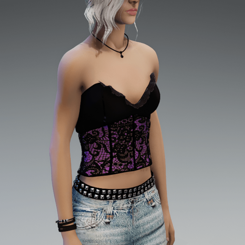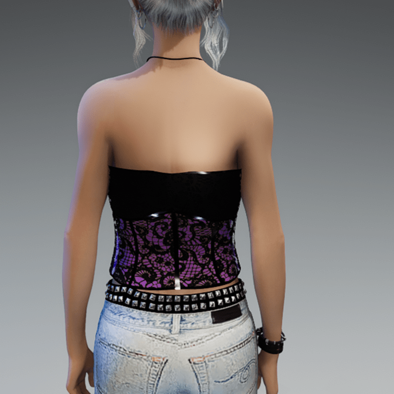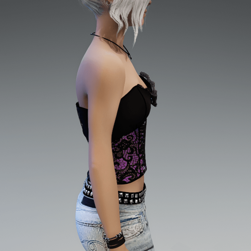 My corset top in black and purple. If you're not sure how this top would look like on your avatar - feel free to try my 'siggys store' version first, before buying this one! Enjoy!