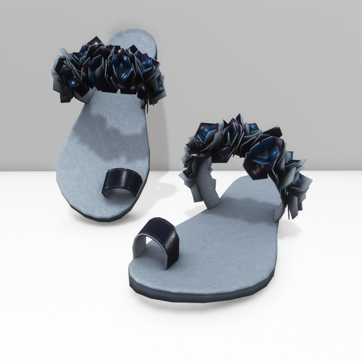Vintage, bohemian, flat, summer sandals for the beach or a casual city look. Get the free demo before purchasing here: https://store.sansar.com/listings/250bbc97-7063-4d97-997b-e0837c556346/vintage-sandals-with-flowers---demo