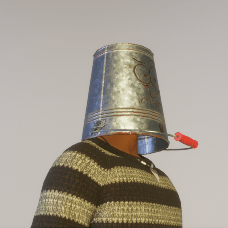 This haunted bucket forms a symbiosis with it's wearer. In 1931, Dietrich VonFrankenschnitzel of Bent Armpit, Wyoming, was accused of being a devil worshiper and thrown into the town well. It took him 9 days to die but his spirit remained earthbound. Trapped in the well's bucket, his soul lingers to seek out new hosts to use as tools of vengeance. In return, the wearer receives protection from minor head injuries. +7 Armor 724 Tris -- 1k Material