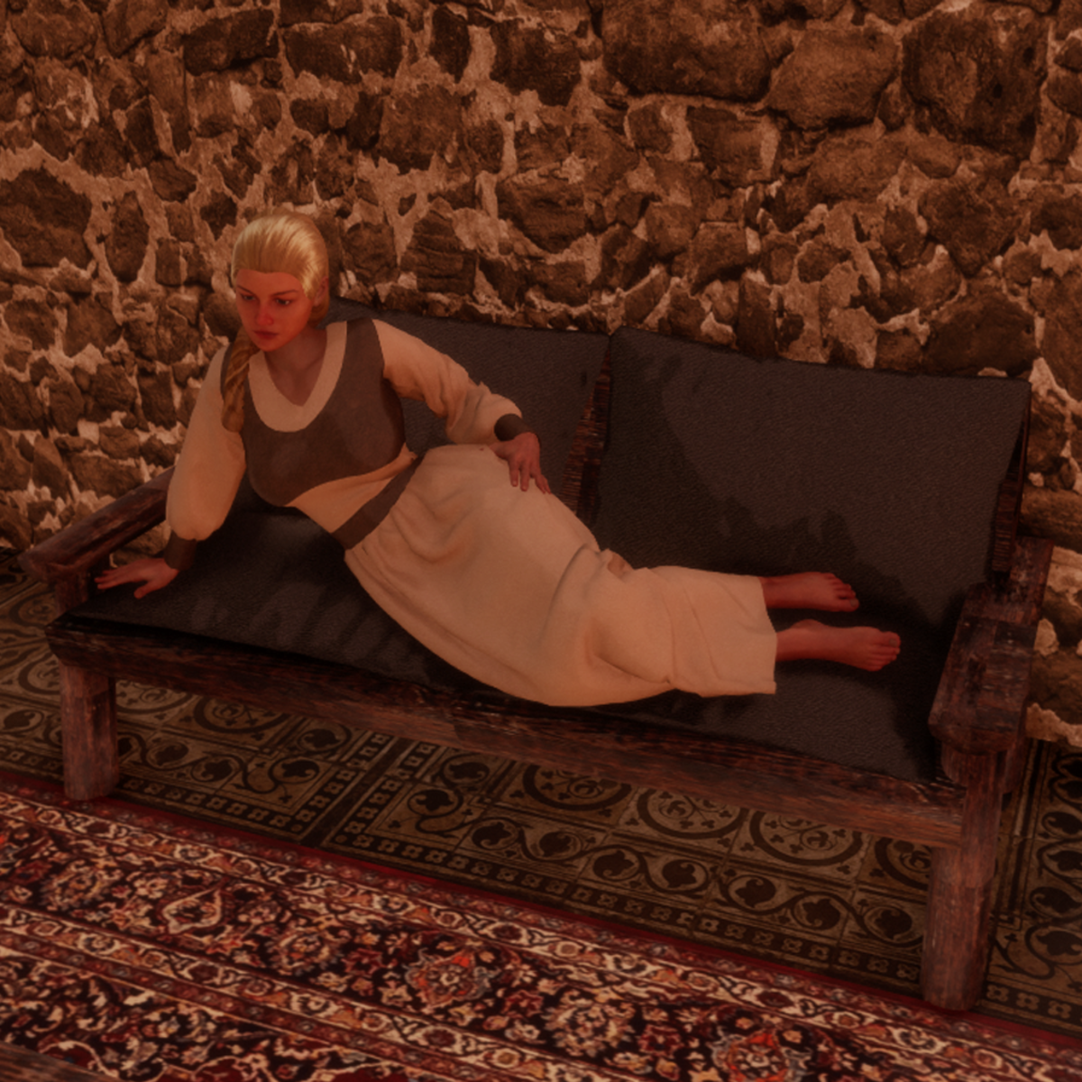 medieval woman lying on a sofa