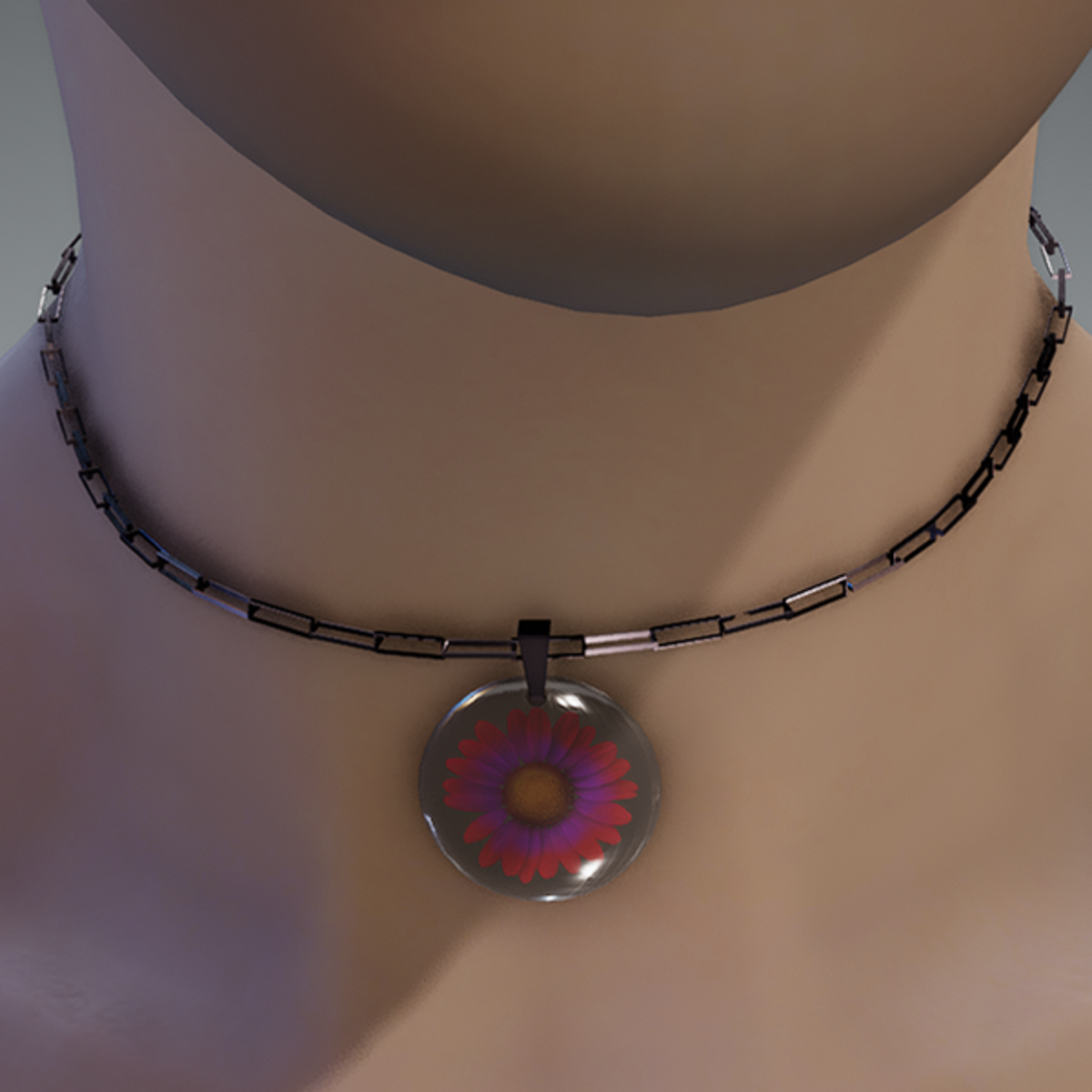 Red & violet resin daisy necklace