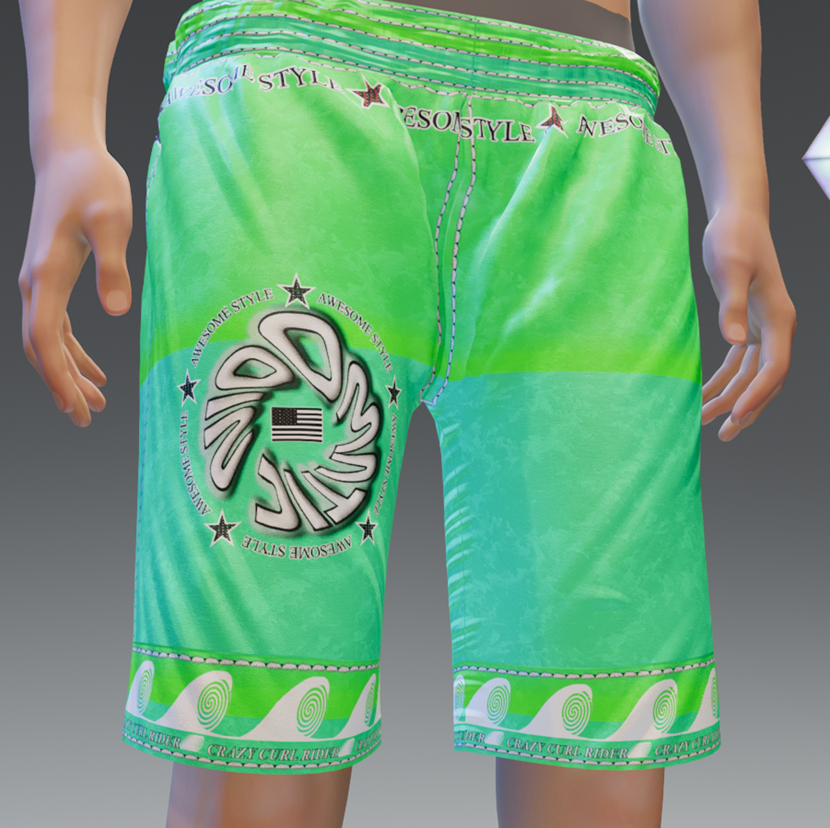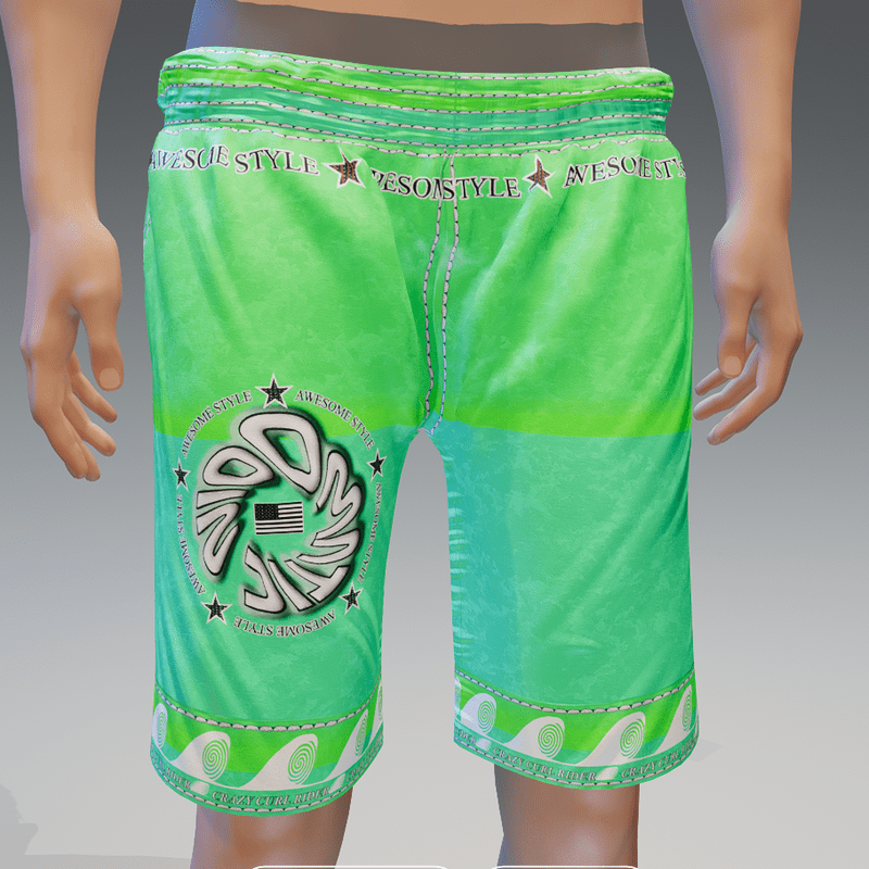 - CCR Green Surfing Shorts w/Back Pocket - Male