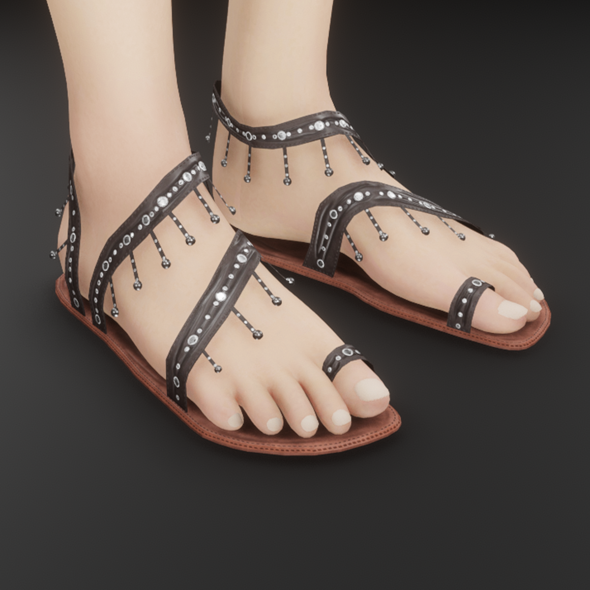 Metal beaded sandals brown leather (FITS SANSARS DEFAULT FEMALE AVATAR)
