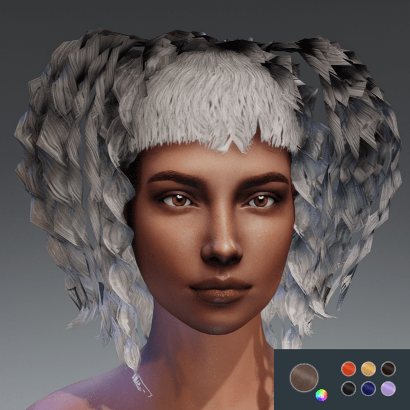 Hair that can be colorized. Just see my items in my experience: https://atlas.sansar.com/experiences/acpixl/acpixl-animation-avatar-store