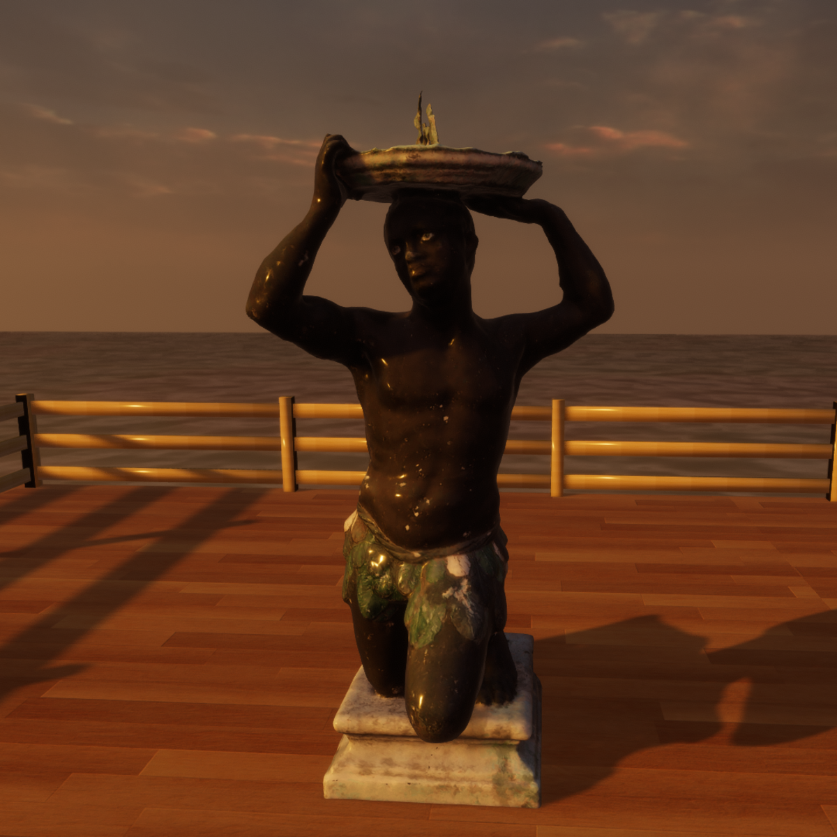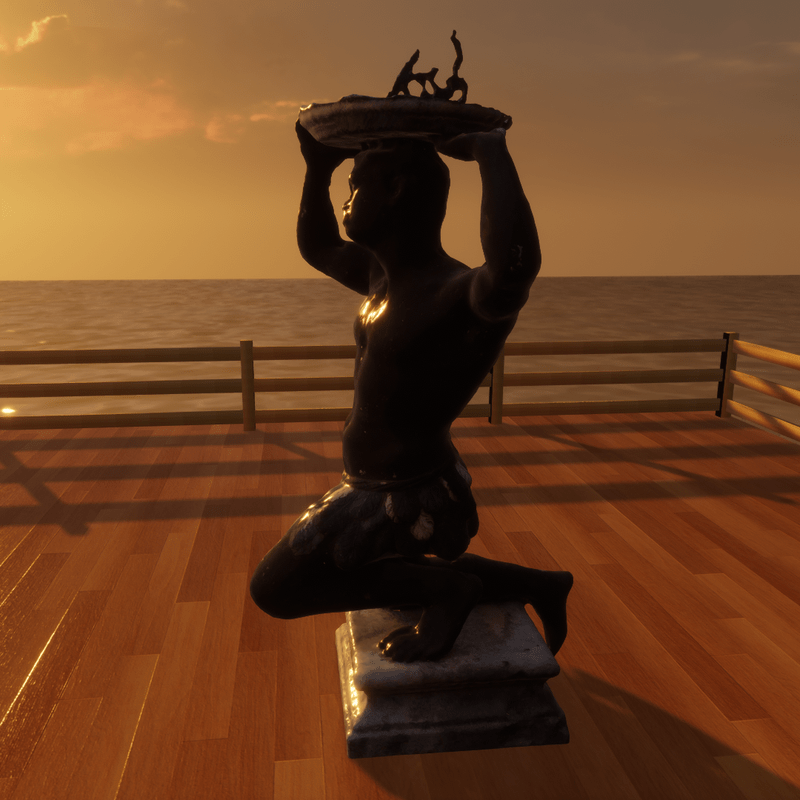 A weather-beaten and aged statue of a man holding a sundial. Just add a collision object within Sansar, sit back and enjoy. Would look awesome in a rustic garden setting, or in the town square. View the item in-world at: https://atlas.sansar.com/experiences/fiddybux-2071/fiddyland-base