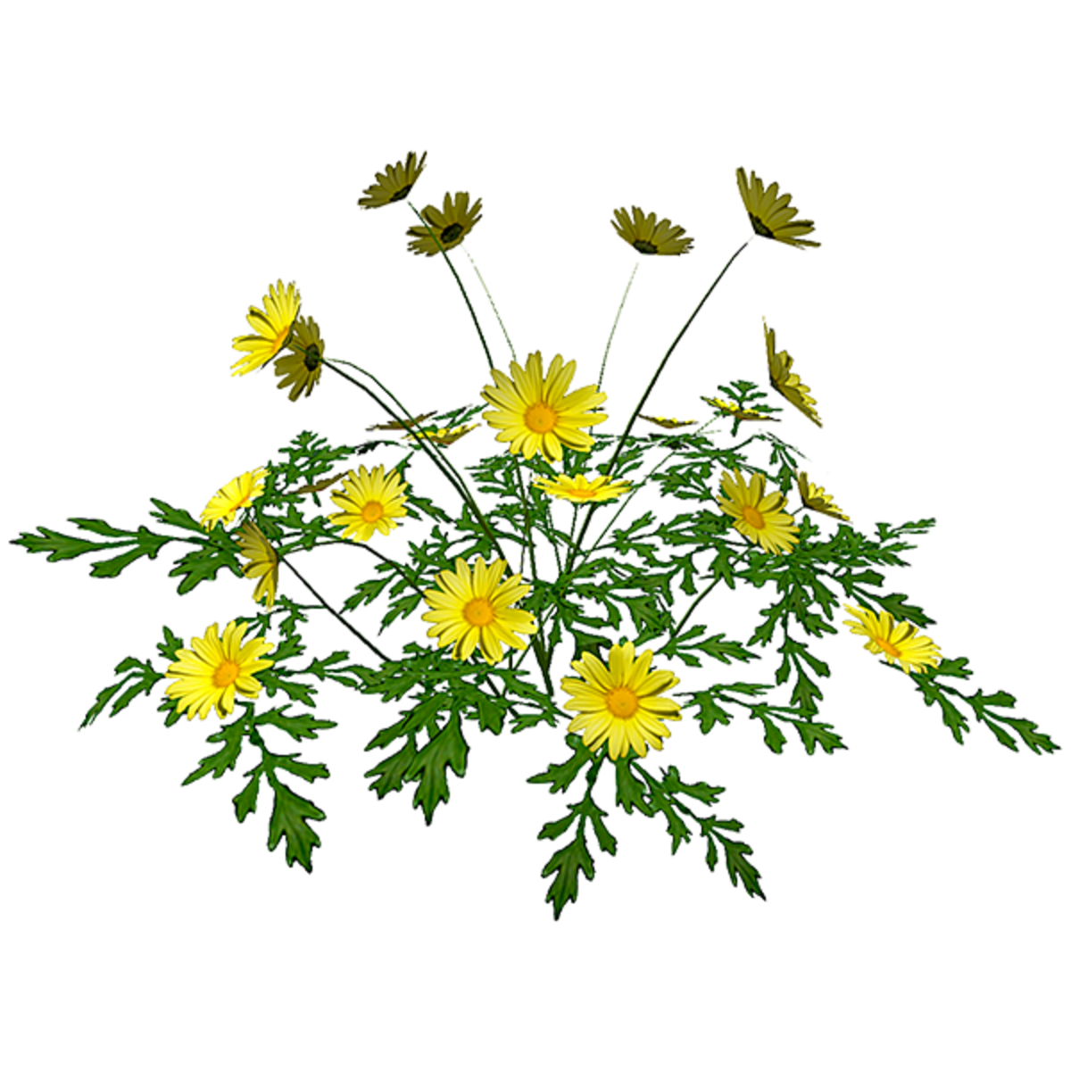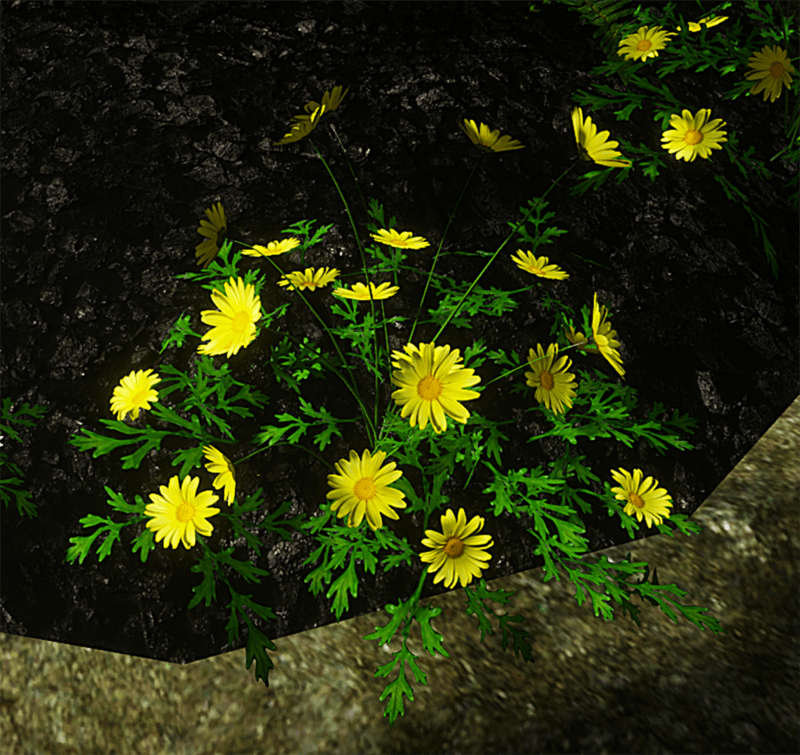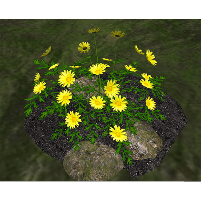Tall yellow daisies. Polycount - 2109 triangles. No physical shape. To see in Sansar experience go to - https://atlas.sansar.com/experiences/reidparkin/reid-s-plants