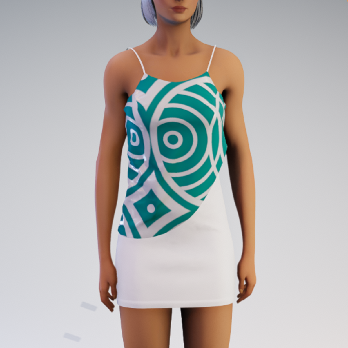 - Layered Spaghetti Minidress - White and Seafoam Circles