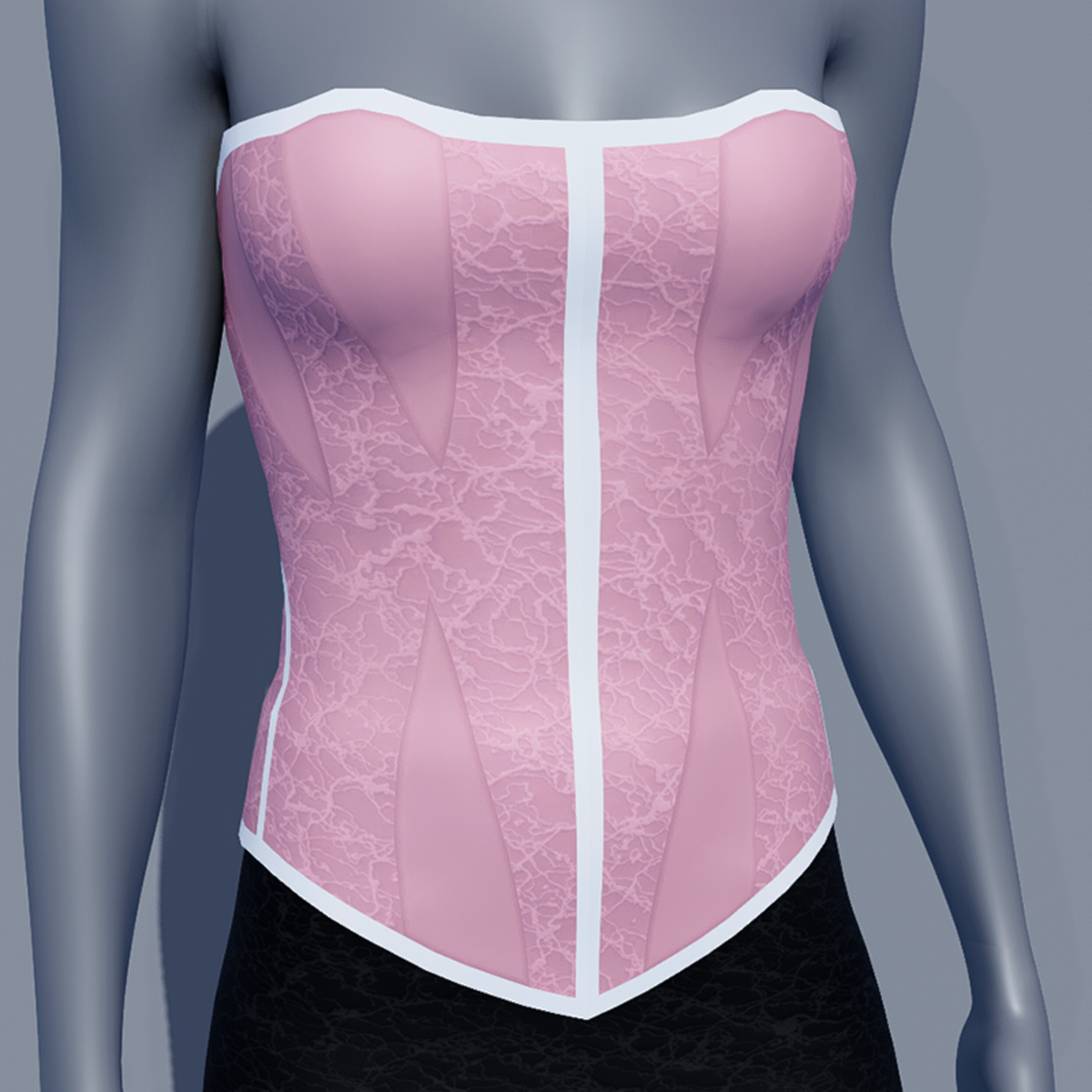 This is a leather corset. As I made it with Marvelous Designer, you can adjust it to your avatar. It is available in 16 different colors at my store. You can also find leather skirt that match colors in my store. Find all my leather clothing here: https://store.sansar.com/store/MorganeParis?category=clothing&q=Leather&sort=created You can see them in Sansar here: https://atlas.sansar.com/experiences/morganeparis/mpp-mainstore