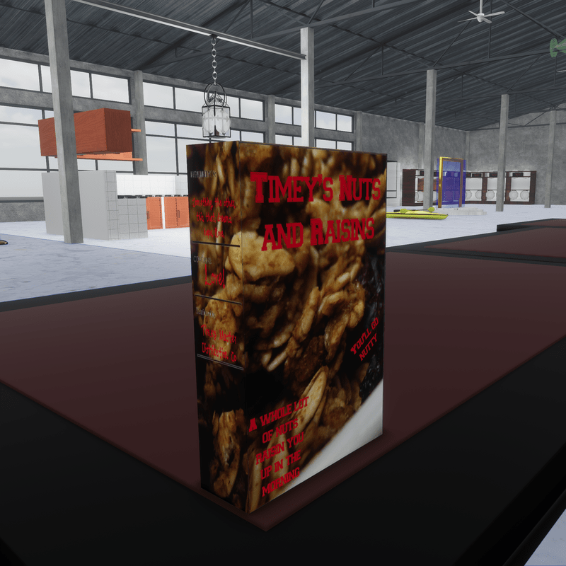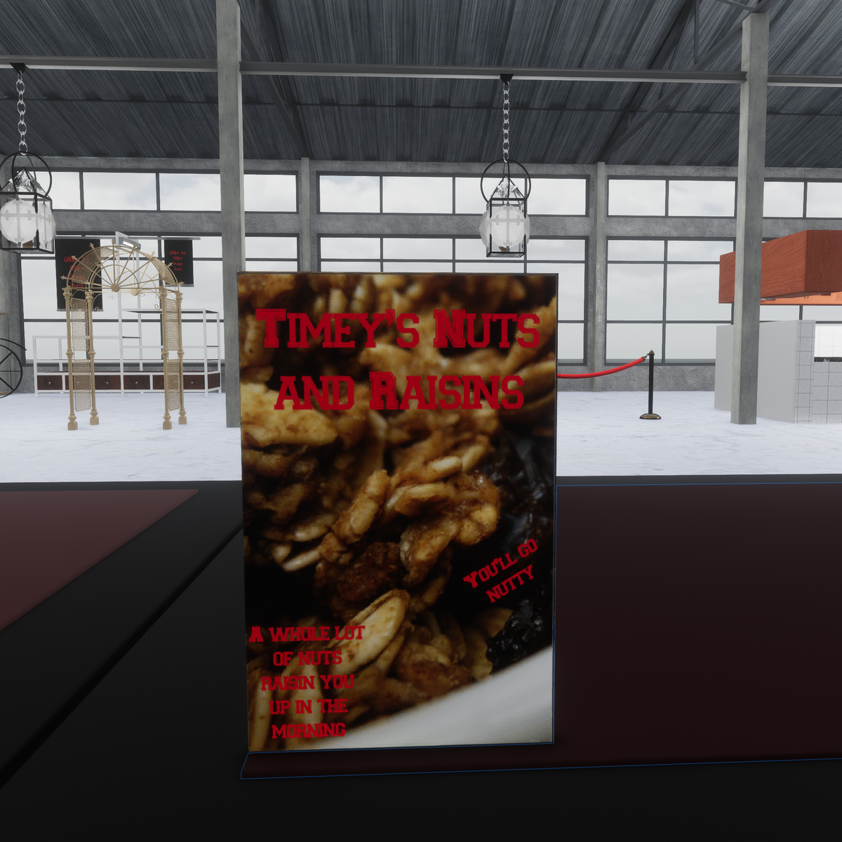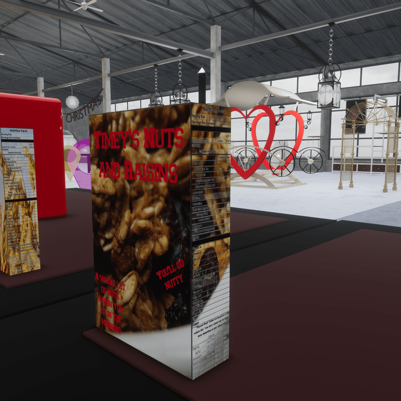 Timey's Nuts and Rasins for you kitchen. enjoy some of Timey's Nuts and rasins in the morning!! (contains no Timey!!) To see this in world visit my store https://atlas.sansar.com/experiences/timeymaster-3376/timey-master-s-store