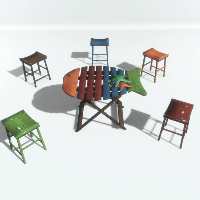 A decorative starfish trio, in tropical beach colours, suitable for interior and exterior decorations. No collision. Table and stools sold separately. Take a look here: https://atlas.sansar.com/experiences/luise/studio-lamda