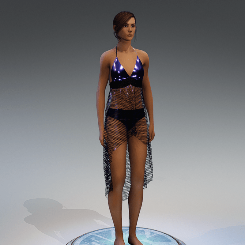 Spacy lingerie made of high quality shiny material with fishnet holes readdy for avatar 2.0. Please don´t forget the ratings ;) Feel free to simulate the clothes before wearing it to adjust it optimally. Visit my store inworld: https://atlas.sansar.com/experiences/randdy/rr-fashion-shop