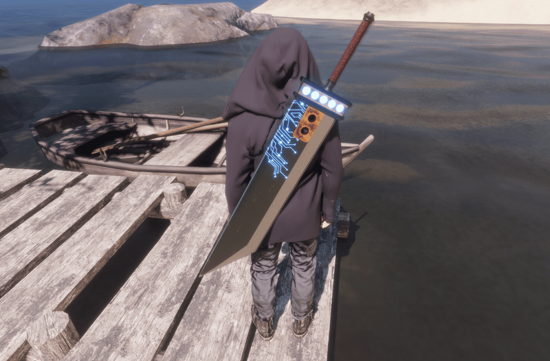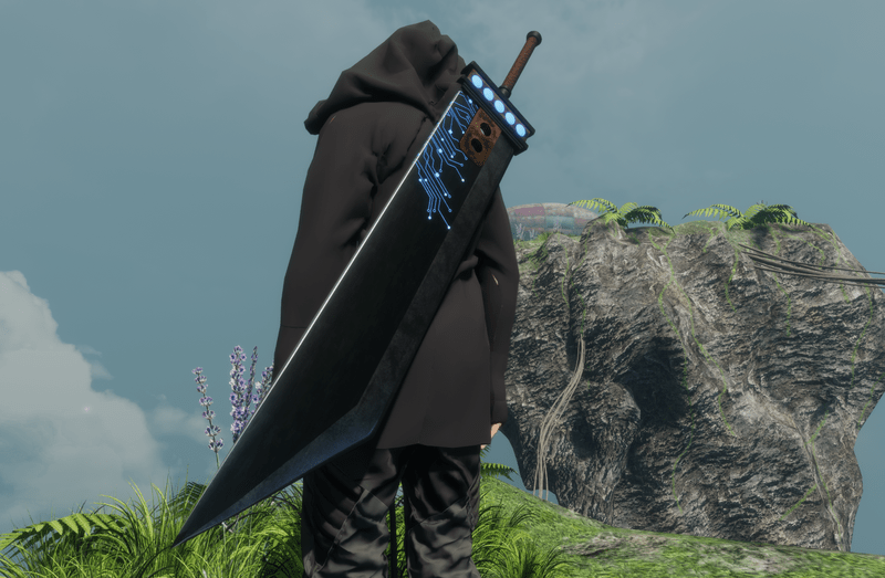 The Buster Sword is a weapon that first appeared in FFVII and has since appeared in several other games in the series. It's Cloud Strife's trademark weapon and serves as an iconic image for Cloud and FFVII due to its massive size and frequent appearance. {Male Neck Attachment}