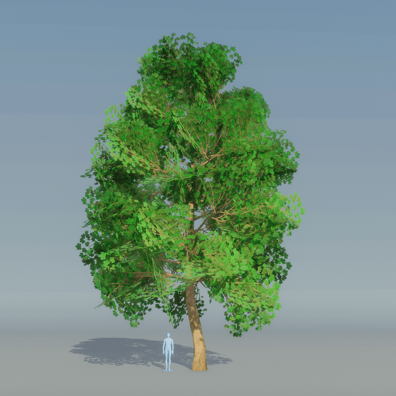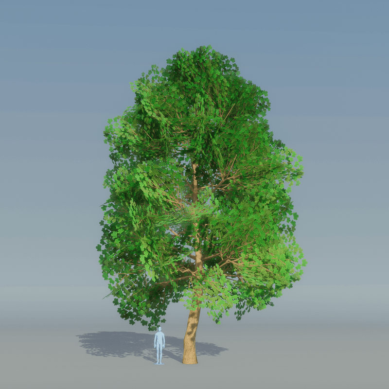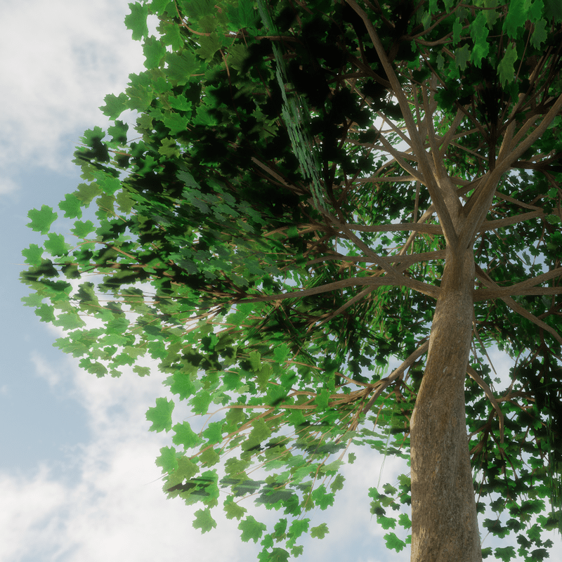Dark Green Maple Tree variation 3 2913 Triangles Trunk collision You can see it at The Worlds factory: https://atlas.sansar.com/experiences/lluisindigo/worlds-factory#Maple_DGreenSP