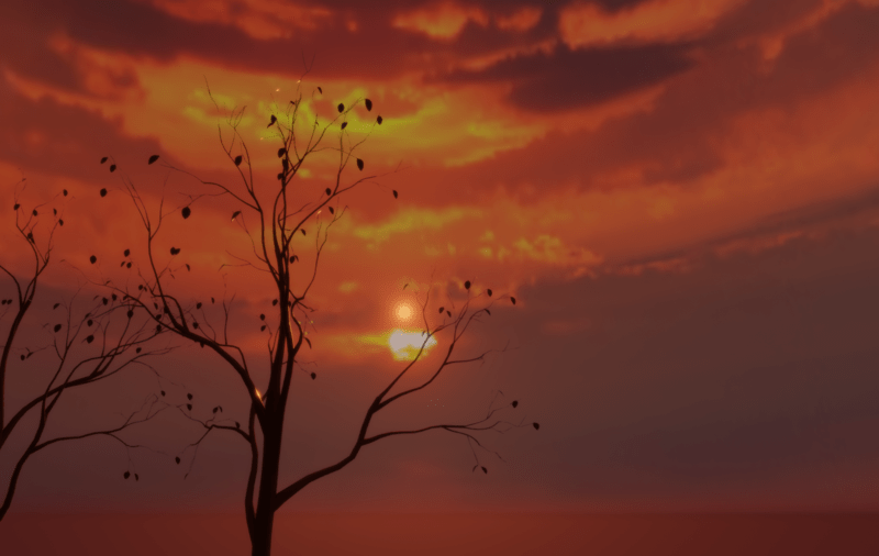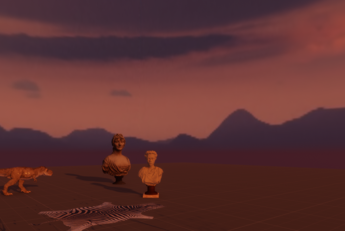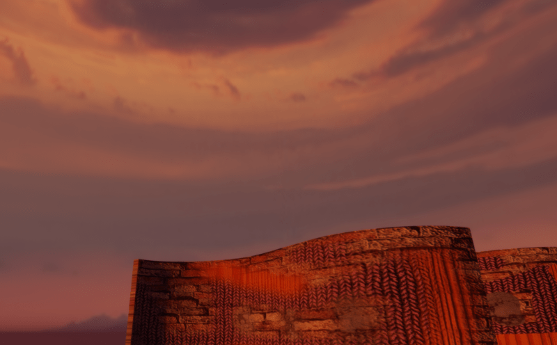 A very smooth and gentle sunset in a semi-desert environment, filled with pinks, oranges and purples. It will suffuse your scene in a relaxing, warm pinky-orange glow. A setting yellow-y sun hangs at about 18deg in the sky. Some distant purple mountains peer over the horizon.