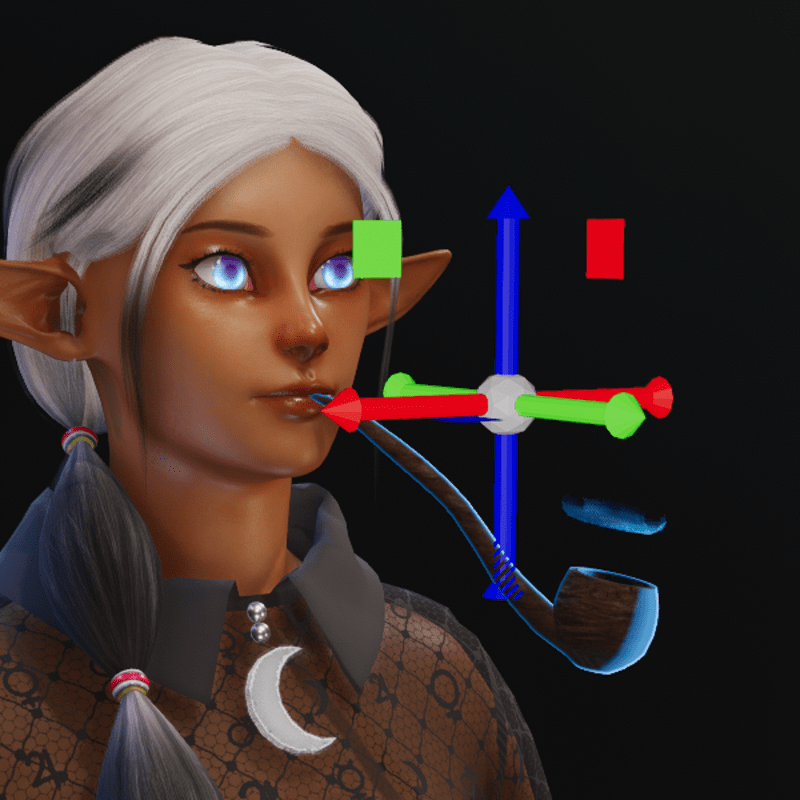 Glowing smoking pipe, with animated smoke rings and transforms Setup for default avi's should work for default M and F This is in the glasses slot and has Adjustments but has lost the rigging for when you talk (not possible to do with accessory slots) a clothing Slot version is available here: https://store.sansar.com/listings/bcad1fab-f873-4244-bbb1-0203ae59c09d/animated-smoking-pipe see gif for example https://gyazo.com/0ee32e6aa00d8c610698be3a940e3079