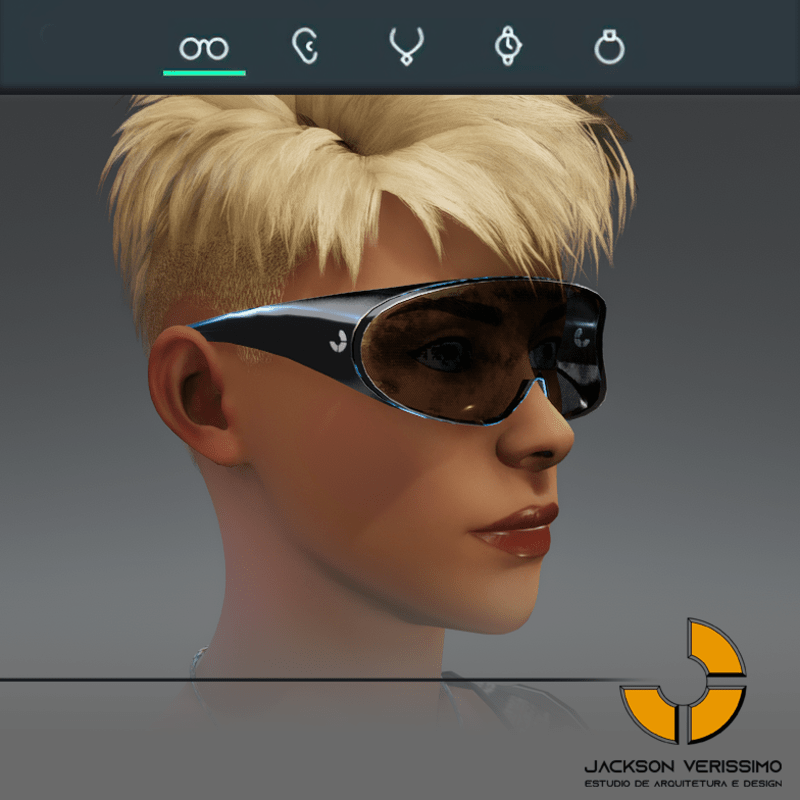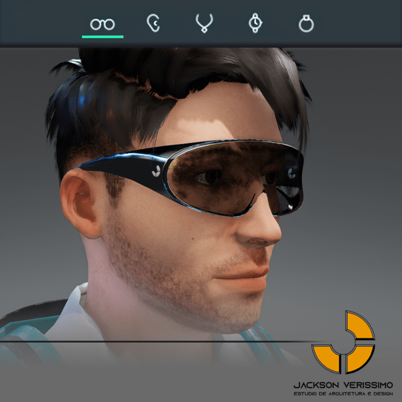 Unisex Glasses Special design for Sansar Metaverse by Jack Verissimo Minimal and elegant Design. PBR Textures. Metallic Frame( Reflection) Metallic and transparent Lens Emissive Details