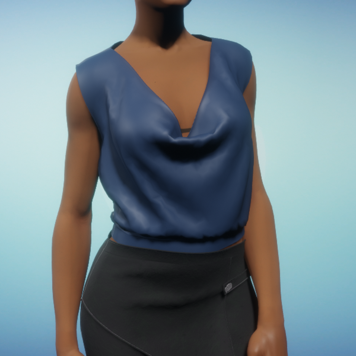 Sleeveless Cowl Blouse - Blue Silk