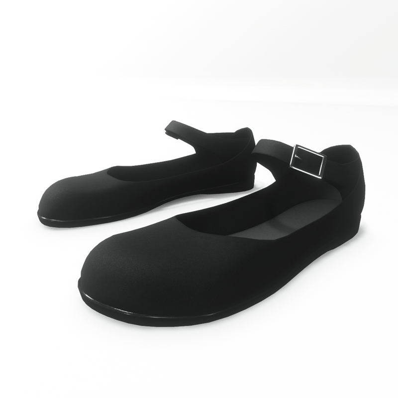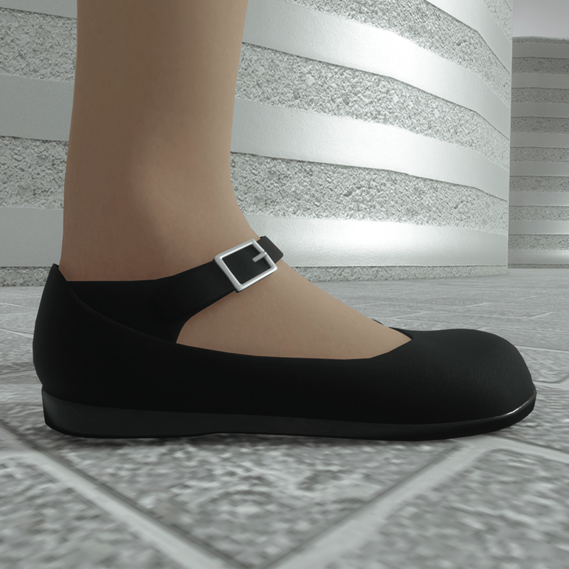 A pair of mary jane style cute flat shoes, with matte black leather upper and black rubber outsole. It fastens with a buckle strap. Please get the free demo item to check the style and fitness before purchasing here: https://store.sansar.com/listings/478f1485-b477-4cdd-b242-f2a11c482700/av-20---mary-jane-flats---demo