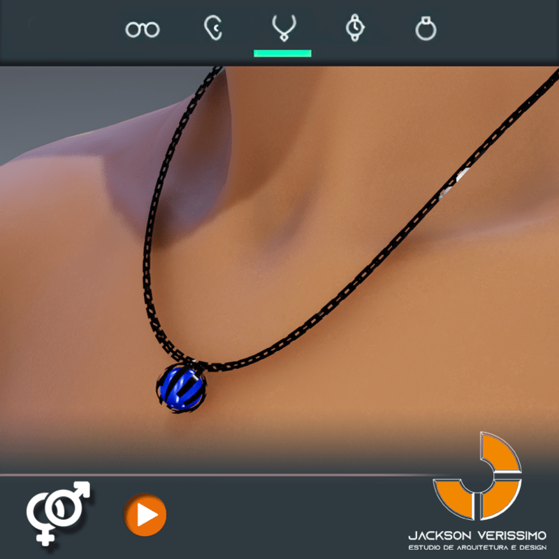 Necklace of Metal with a animated cosmic sphere pendant. 2k PBR textures. This mean that the image of pendant will not pixelate when some user do the zoom camera in this detail. Match with all avatars of Sansar. Maybe a little adjustments if necessary.