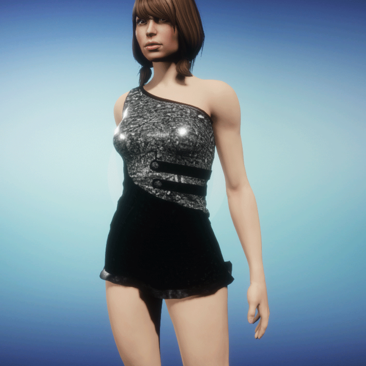 Modern summerdress with glitter latex and leather parts! Please simulate the clothes before wearing to adjust it optimally.