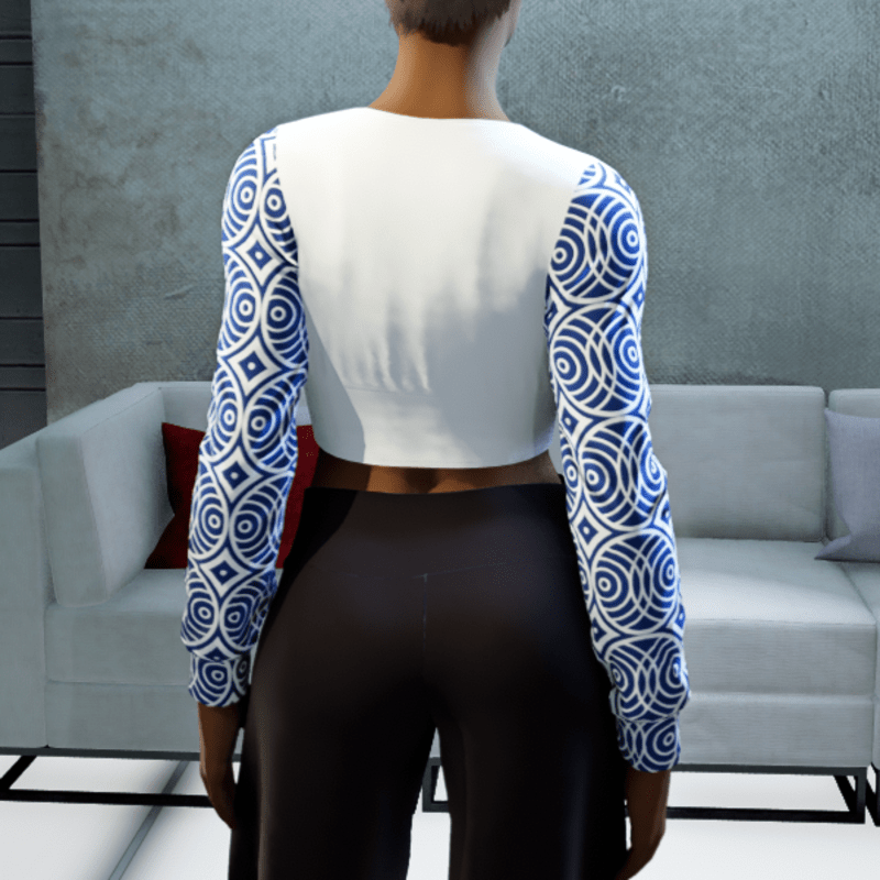 - Cropped V-neck Blouse - White and Blue Circles