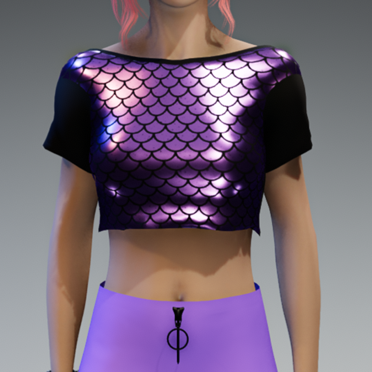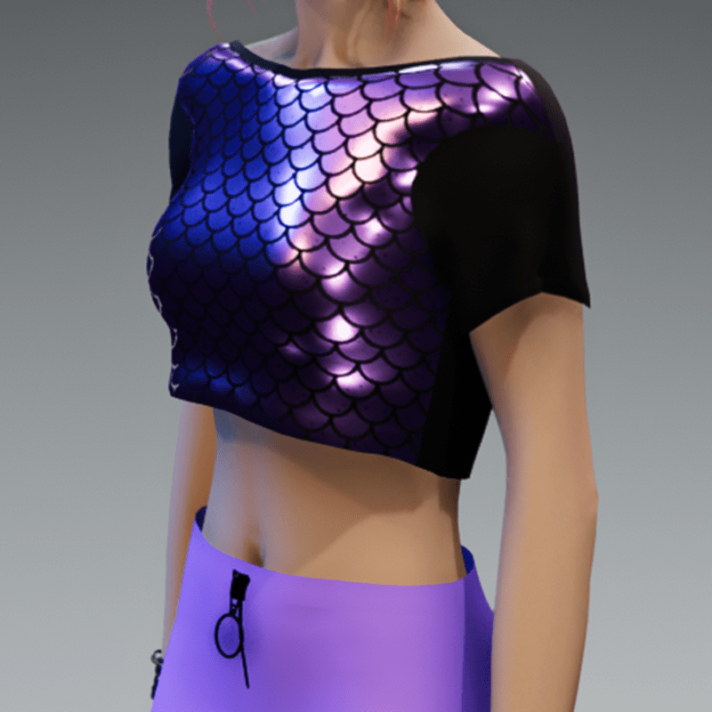 My Crop Top Girlie with a lilac shiny metalic Mermaid-Fish-Fabric on the front. If you also like the skirt showing in the images, check my "Lilac Skirt with Black Zipper" in my store, too! Enjoy!