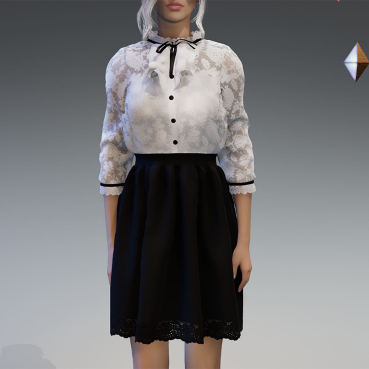 This dress comes as a lace blouse and skirt combination for some festive or just classic times. This is the short-skirt-version for some extra cute vibes, but you can also find the a longer skirt version in my store. Enjoy <3