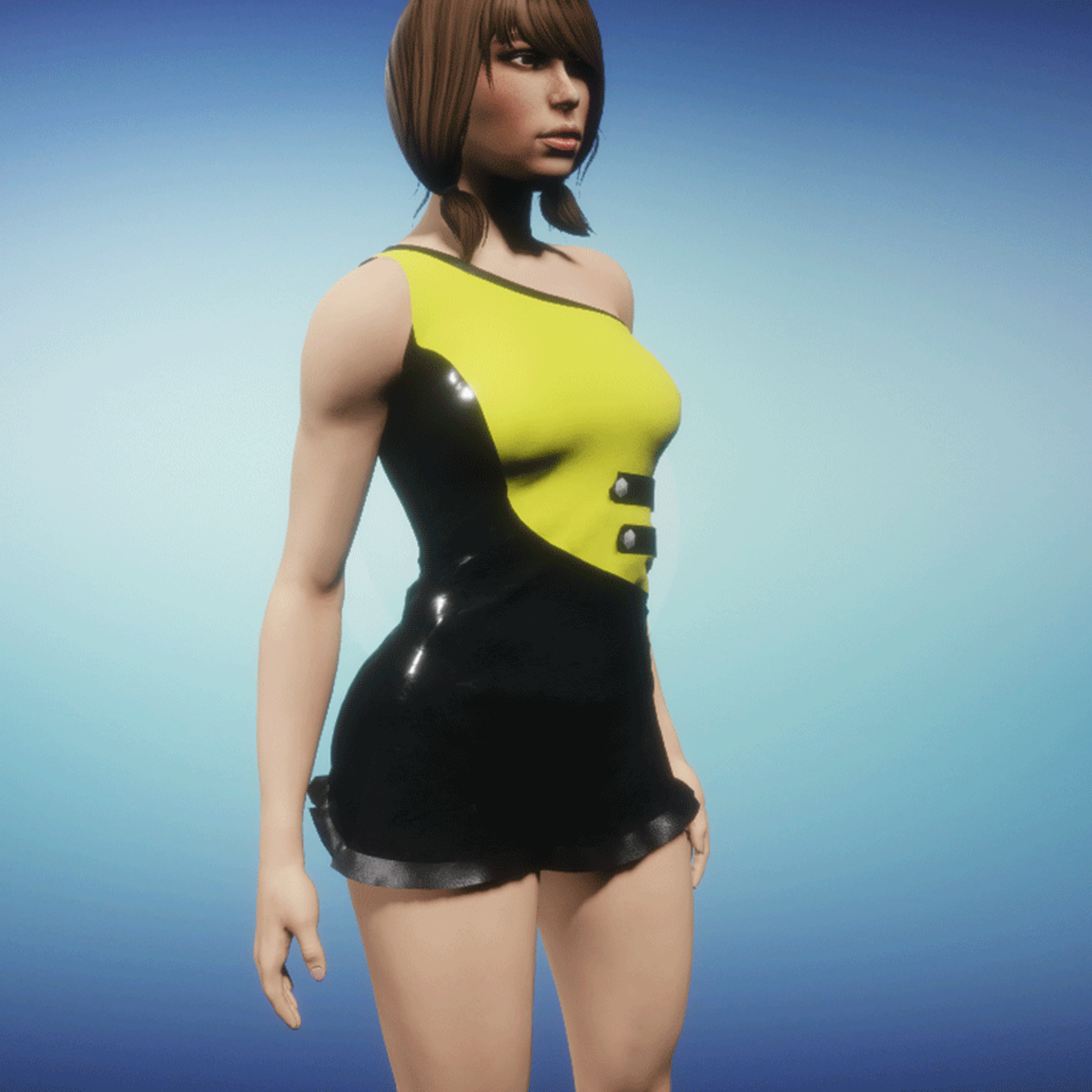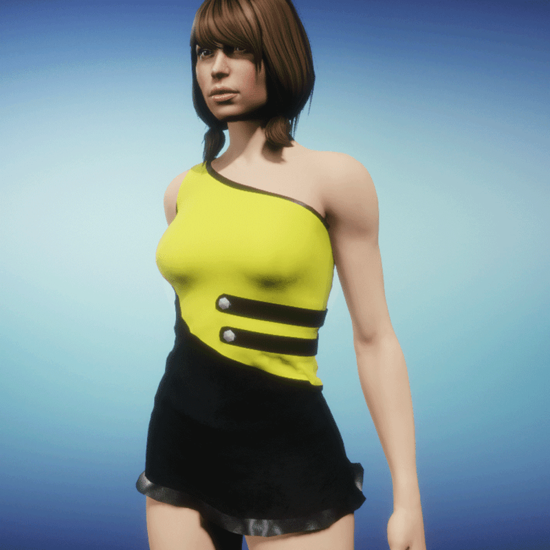 Modern summerdress with leather parts! Please simulate the clothes before wearing to adjust it optimally.