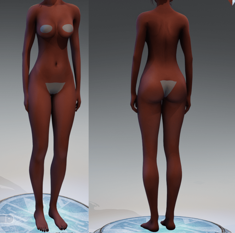 Bray is a curvy female (human). She is a 2.0 avatar, with body shape modification and a new face/texture. Modesty undergarments are provided. This version of bray has dark skin, multicolored black/brown eyes, neutral makeup and black nails. Adjust clothes accordingly for marvelous clothing.