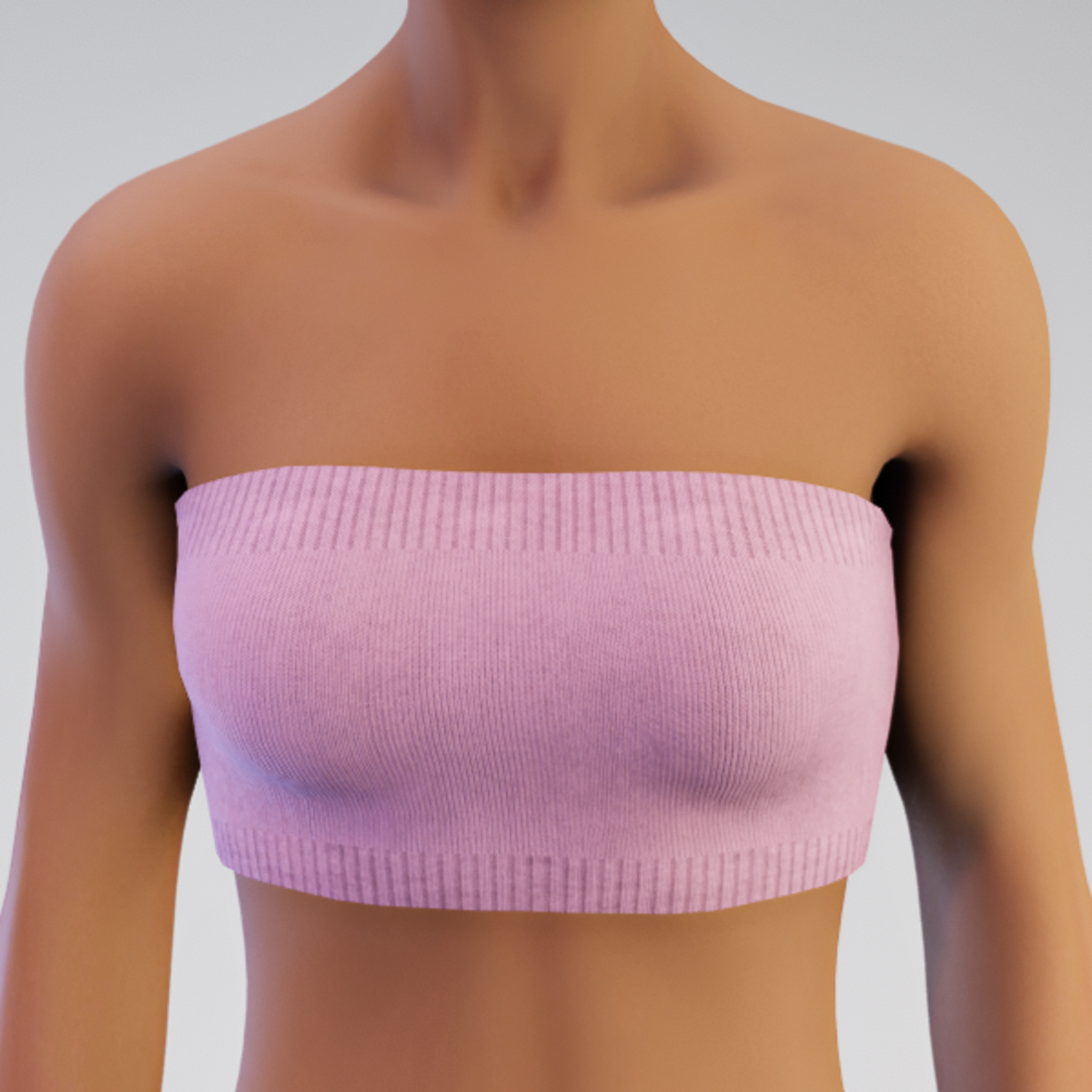Simple knit tube top with 2 x 2 ribbing. Easy adjustment; just hit the button and you are done. Avatar 2.0. Works well under jackets and open tops. Try the DEMO.