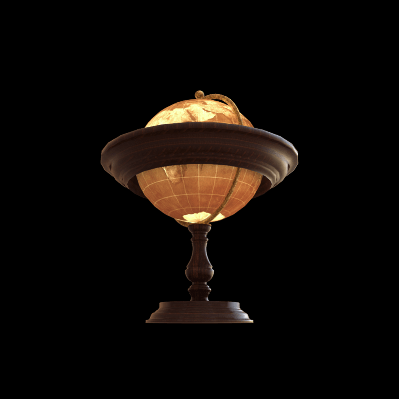 Illuminated vintage world globe prop with built-in light, adjust if needed..