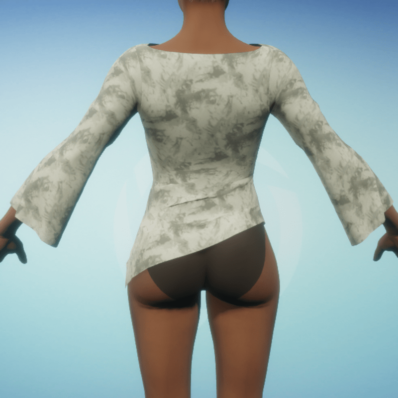 Asymmetric blouse featuring bell sleeves and a cutout on the chest in an abstract print. By Sweet Distractions