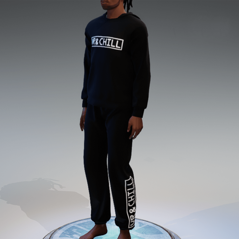 My chillout sweatpants in black with my "VR & chill"-Logo on one site for men. If you're interested in the "VR & chill"-hoodie - you can find this one in my store, too! Enjoy!