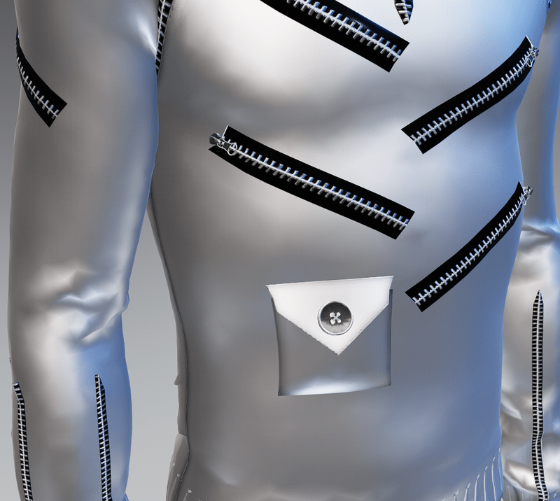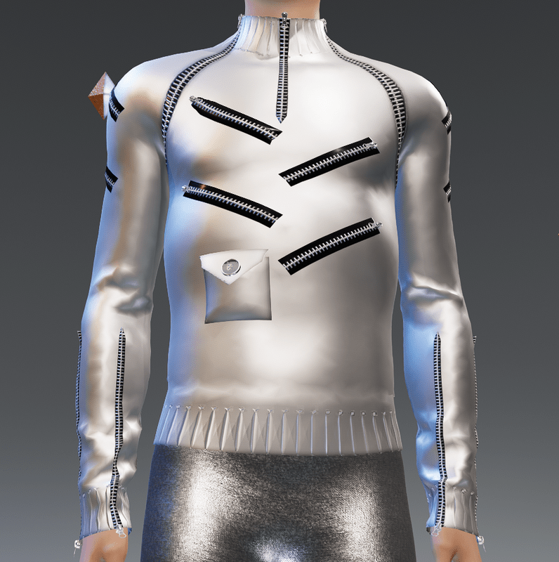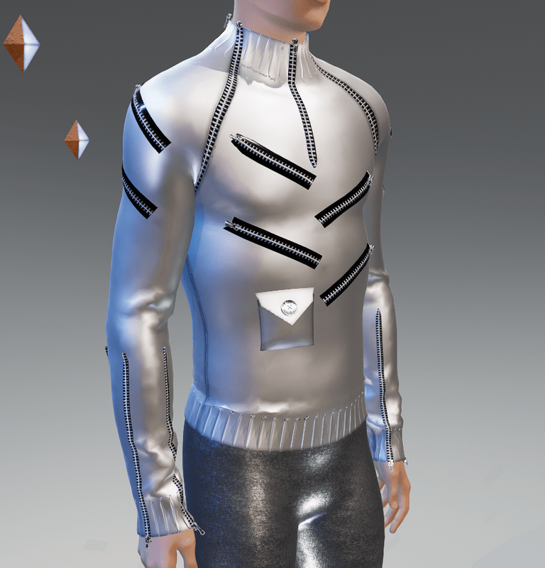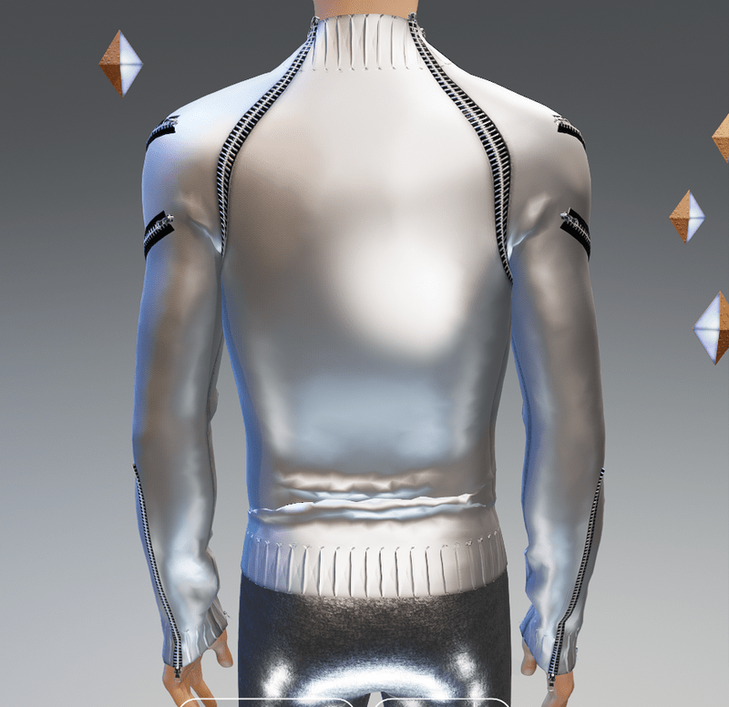 ***ORIGINAL DESIGN*** Out with the old and traditional! In with the future with this cool to the max Moda-Futuro Space-Age 19 Zippers Silver(Smooth Trims) Sweater. The 19 zippers are fully functional. The 19 zippers are functional. It has 3 zippers at the cuffs, front, back and middle in each sleeve for ultimate coolness! Enjoy and have fun! :)