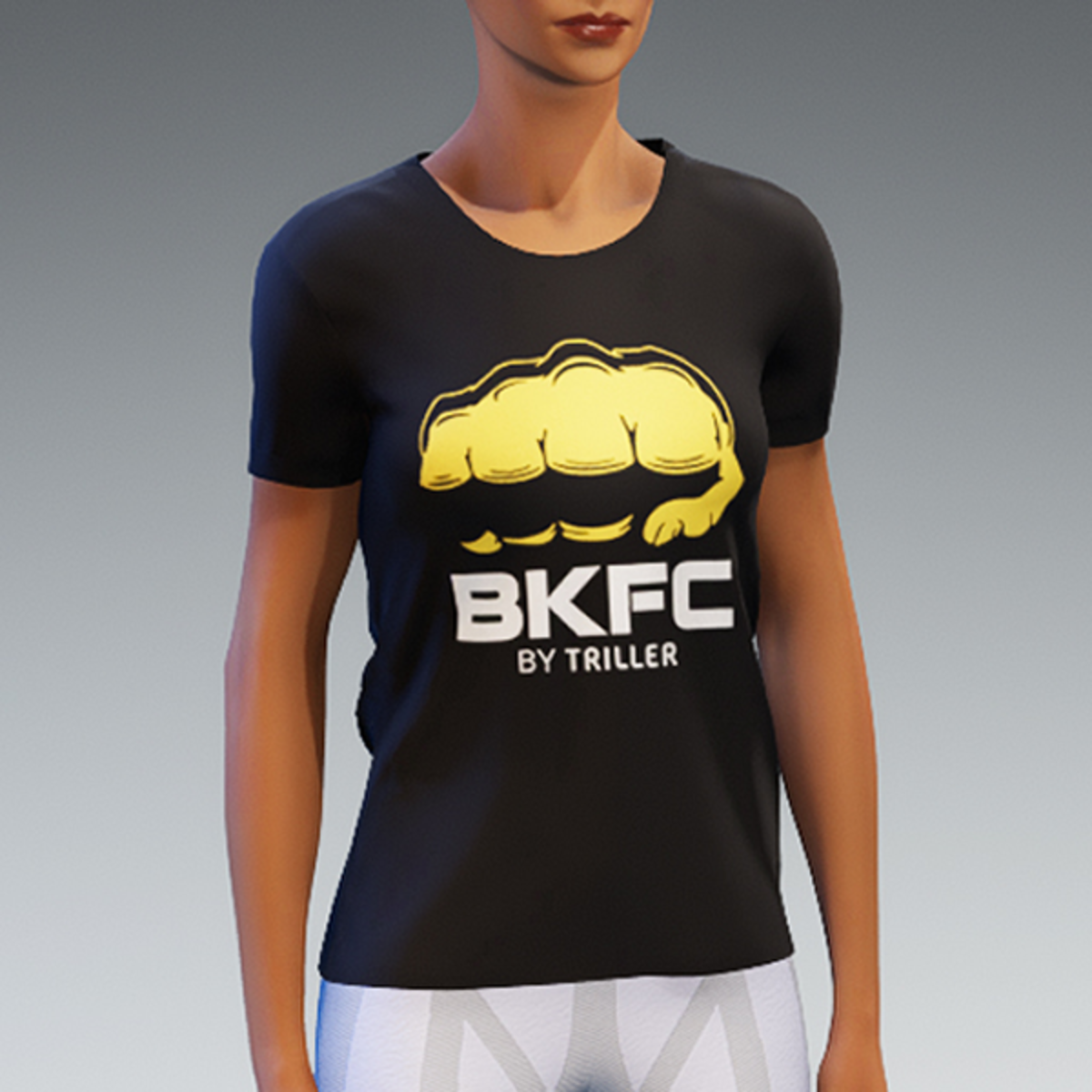 Black, short sleeve T-shirt with a BKFC logo